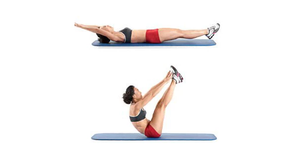 3.Ridicari simultane – aseaza-te pe podea cu mainile si picioarele intinse. Incepe miscarea prin ridicarea simultana a membrelor pana ce varfurile degetelor de la maini le ating pe cele ale picioarelor. Daca ai acasa greutati le poti folosi, fie gantere mici, fie saculeti cu nisip pentru picioare. Acest exercitiu lucreaza intregul abdomen si da rezultate uimitoare. Se vor executa 4 serii a cate 10 repetari dar dupa o regula simpla, 3 secunde la ridicare si 3 secunde la coborare.