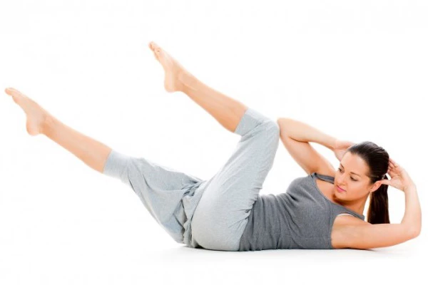 4.Exercitiul bicicleta – se executa foarte simplu si lucreaza si partile laterale. Aseaza-te pe podea intinsa, pune mainile la ceafa si ridica-ti putin capul iar picioarele la 90 de grade. Incepe miscarea prin aducerea genunchilor la piept pe rand. Atinge genunchiul stang cu cotul drept si cotul stang cu genunchiul drept, alternativ. Incearca sa faci 10 repetari si 4 serii.