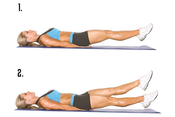 2.Abdomenele cu picioare – este unul dintre cele mai bune exercitii pentru abdomen deoarece lucreaza tot abdomenul, cu precadere partea inferioara. Se executa stand intinsa pe podea cu mainile sub fund. Ridica-ti picioarele pana simti abdomenul incordat si incepe sa cobori si sa ridici fiecare picior alternativ. Daca vrei sa fie mai greu si rezultatele sa apara mai repede, poti folosi niste saculeti cu nisip pentru picioare. Repeta miscarea de 10 ori pentru fiecare picior in decursul a 4 serii.