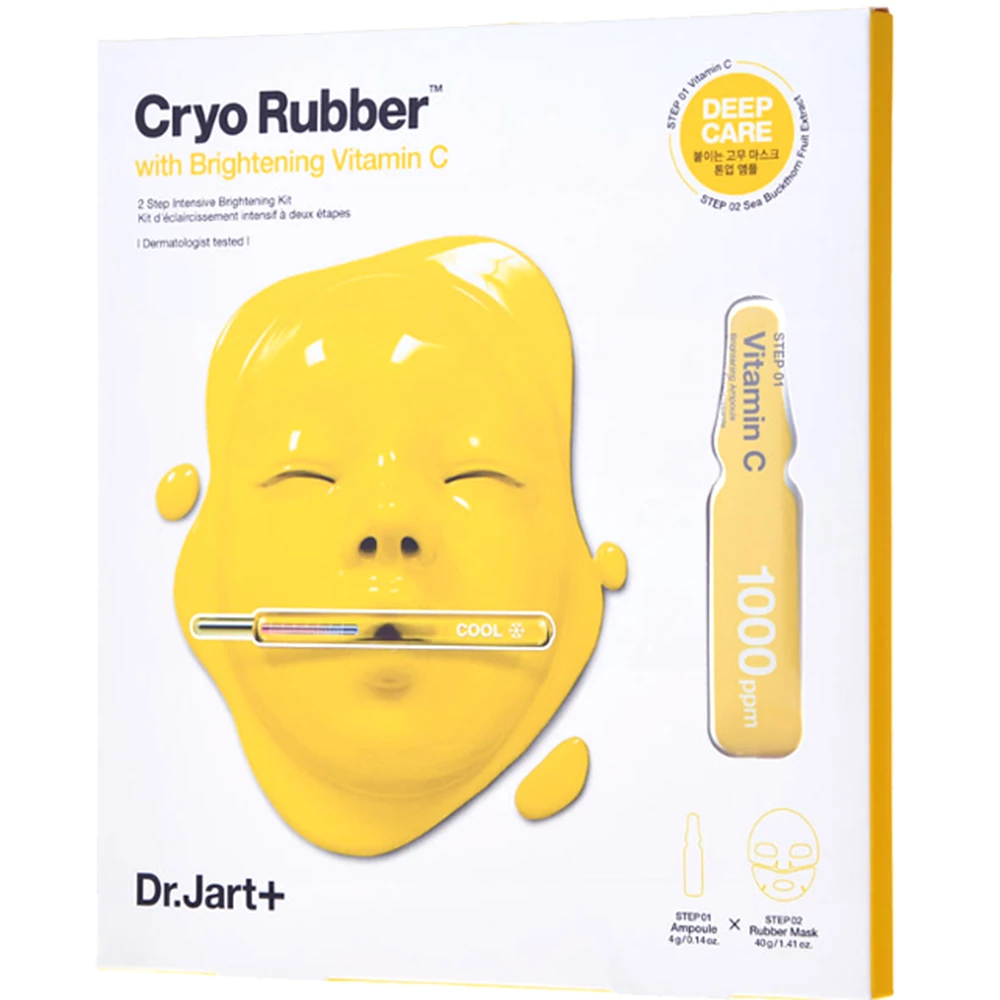Vitamina C este un aliat excelent toamna, cand ne ajuta si sa ramanem sanatosi si sa avem un ten luminos. Principalele sale atuuri sunt puterea de a reduce vizibil si relativ rapid aspectul petelor intunecate (provocate de expunerea la soare sau de inaintarea in varsta), dar si a leziunilor post-acneice. Viatmina C face pielea sa arata mai luminos si mai uniform, iar in combinatie cu niacinamidele din serum intineresc vizibil tenul. Brandul Dr. Jart nu dezamageste nici de aceasta data, propunand o inovatie fascinanta: masca scade temperatura pielii, iar reactia naturala este cresterea fluxului sanguin, ceea ce ajuta substantele benefice sa fie absorbite mai usor in piele. Serul se aplica pe tenul curat, iar masca cu textura cauciucata ii potenteaza efectul si il dubleaza cu extra-hidratare.