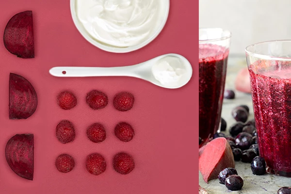 Sfecla, in aceasta combinatie, produce acid nitric, care ajuta la circulatia sangelui si inclusiv la irigarea creierului. Cum obtii acest smoothie sanatos? Simplu: amesteci in blender 150 de grame de sfecla fiarta, 60 gr zmeura, proaspata sau inghetata, 250 ml suc de merisoare, 225 gr iaurt sarac in grasime, si cateva bucati de zmeura pentru decor.