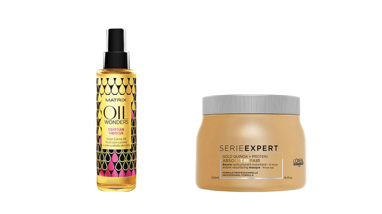 Deshidrat dupa anotimpul rece, parul trebuie sa isi recapete stralucirea iar asta nu va veni de la sine doar pentru ca ne-o dorim. Dar ne bucuram sa facem loc pe masuta de toaleta unor produse care ne garanteaza aspectul sanatos si vibrant al fibrei capilare. Incepem cu cativa stropi de ulei parfumat Oil Wonders Egyptian Hibiscus by Matrix, care vine la pachet cu stralucire si textura matasoasa. Se aplica de la jumatatea parului in jos, iar rezultatul este fabulos si imediat! Iti mai propunem sa folosesti saptamanal una dintre cele doua masti Wella, Invigo Color Brilliance sau Oil Reflections. Vor pune in valoare culoarea parului si ii vor da o luminozitate spectaculoasa!