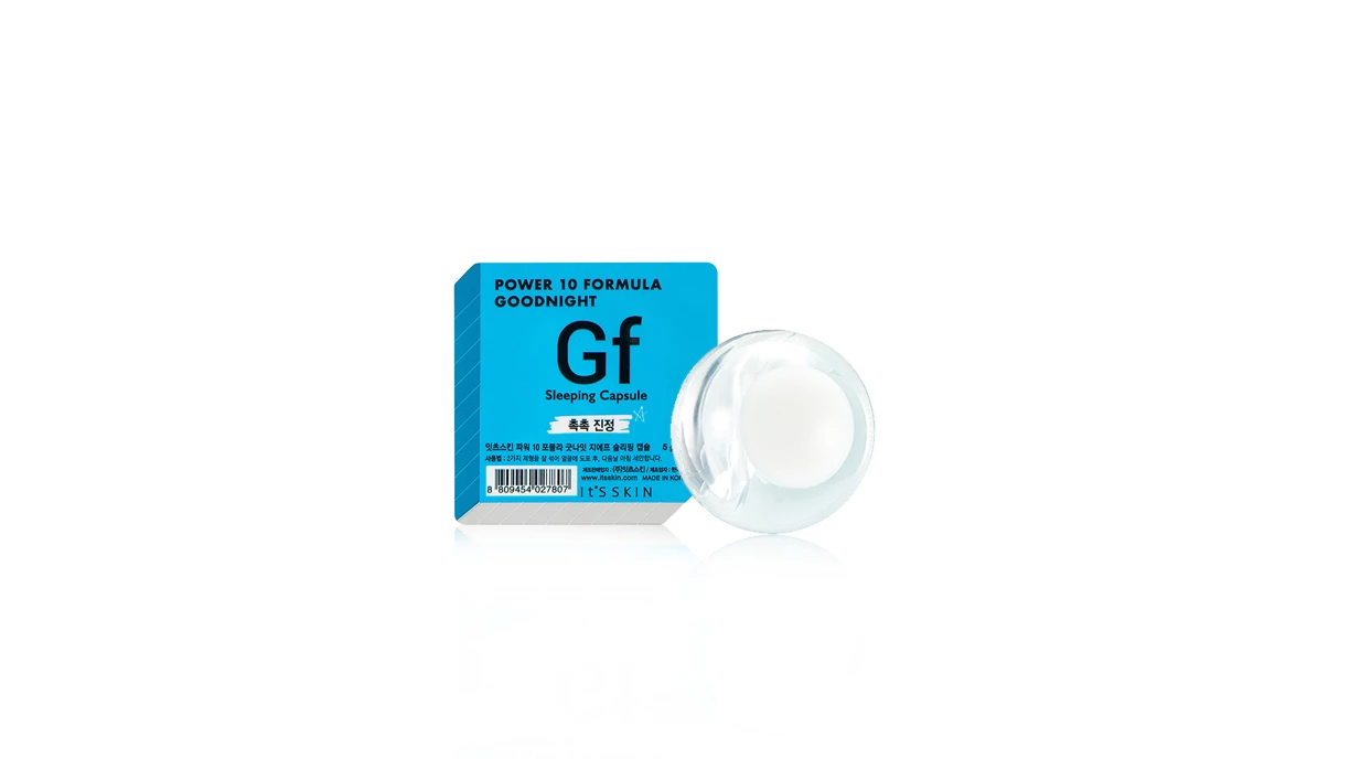 It's Skin Power 10 Formula Goodnight GF Sleeping Capsule este un tratament intesiv de noapte care hidrateaza tenul in profunzime. Continutul capsulei de aplica pe tenul curat inainte de culcare si se clateste a doua zi. Contine extracte naturale cu proprietati puternice, iar diferenta pe care o vei reamarca dupa utilizare este extraordinara.