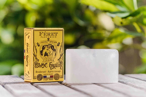 Bloc Hyalin este o piatra care beneficiaza de un proces indelungat si complex de purificare, in comparatie cu alte pietre. Alaunul de potasiu din care este creat Blocul Hyalin, este 100% natural, nefiind amestecat cu produse chimice sau produse de sinteza. Forma dreptunghiulara si rotunjita face utilizarea foarte usoara, in diverse forme. Se poate utilizare ca si deodorant, fiind cea mai buna alternativa la deodorantele clasice care contin parfum, alcool si agenti chimici. Aplicat pe piele, lasa un strat invizibil de saruri minerale, care impiedica dezvoltarea bacteriilor ce produc mirosul urat de transpiratie. Permite pielii sa respire si nu blocheaza porii. Se utilizeaza partea rotunjita si nu pateaza hainele, fiind perfect pentru toate persoanele.