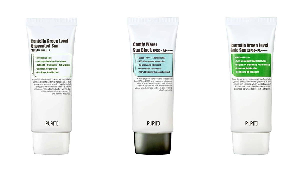 Colectia de creme cu protectie UV a brandului Purito este extrem de apreciata si de iubita in lupta impotriva efectelor nocive ale razelor solare, atat UVA (cauzeaza imbatranirea, uscare si ridarea acesteia), cat si UVB (cauzeaza neplacutele si periculoasele arsuri solare). Cele trei variante de creme solare Purito vor satisface nevoile tenului sensibil, uscat sau gras, avand formule special destinate acestora.