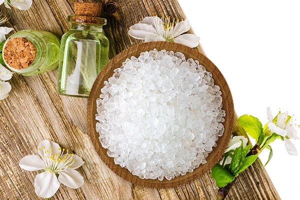 Sarea de baie este aliatul perfect pentru o piele fina si stralucitoare. O sursa bogata in nutrienti si cu un intens efect hidratant, sarea de baie patrunde in piele si o protejeaza in permanenta, ameliorand acneea, eczemele si previne reaparitia acestora. Sarea de baie elimina celulele moarte de la suprafata pielii, dezvaluind o piele catifelata, infuzata cu arome care iti vor incanta simturile. Si un plus, care va face toate femeile sa zambeasca, este faptul ca sarea de baie lupta impotriva celulitei.