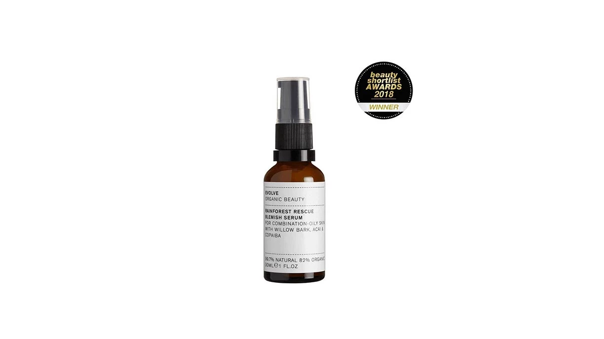 Cand simti ca acneea este o stare de spirit continua pentru tenul tau, indraznim sa te provocam! Serul Rainforest Rescue by Evolve Beauty este cel mai eficient tratament pentru tenul acneic si functioneaza ca o solutie magica pentru cei care se lupta cu enervantele cosuri. Contine extras de scoarta de salcie, o sursa naturala de acid salicilic, care confera un boost regenerarii celulelor epiteliale si exfoliaza fara a irita pielea. Serul este recomandat tenului uleios, intrucat diminueaza productia de sebum si astfel ajuta la combaterea acneei. Avand o formula lejera, naturala si vegana, serul calmeaza pielea si ofera tenului un aspect vizibil imbunatatit. Are 99,7% ingrediente naturale, 82% fiind organice!