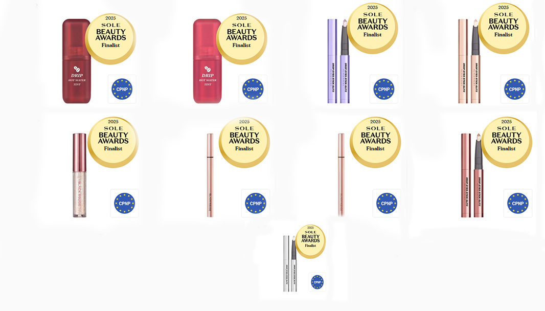 Cu 9 produse nominalizate distribuite in trei directii — buze (2 produse Drip Hot Water Tint), ochi glitter (5 produse Drop Eyes Stick Glitz + Pearlvely I Glitter) si tusuri de ochi (2 Power Proof) — BLACK ROUGE este brandul de machiaj cu cea mai extinsa prezenta la SOLE Beauty Awards 2025.