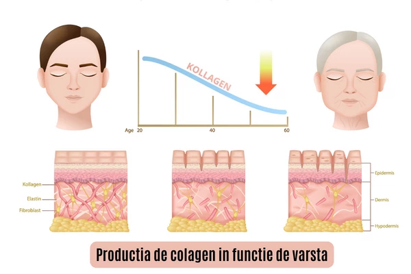 - Adoptați un stil de viață sănătos: Pentru a sprijini producția naturală de colagen, adoptați o dietă echilibrată, bogată în vitamina C, zinc și proteine. Protejați-vă pielea de soare și evitați fumatul.