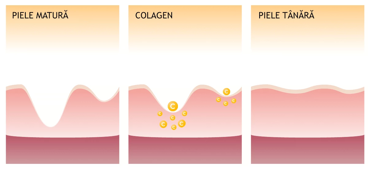 Oferă elasticitate și fermitate: Fibrele de colagen formează o rețea complexă care susține pielea, conferindu-i elasticitate și previne formarea ridurilor.