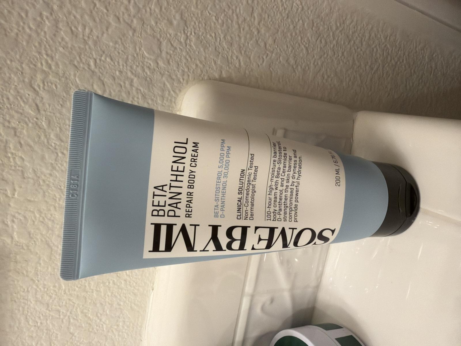 Some By Mi Beta Panthenol Repair Body Cream este o crema de corp intens hidratanta, formulata special pentru pielea sensibila sau uscata, predispusa la disconfort si iritatii cauzate de o bariera cutanata slabita. Cu o textura catifelata, care se absoarbe rapid, ofera hidratare de lunga durata si un efect calmant vizibil inca de la prima aplicare.