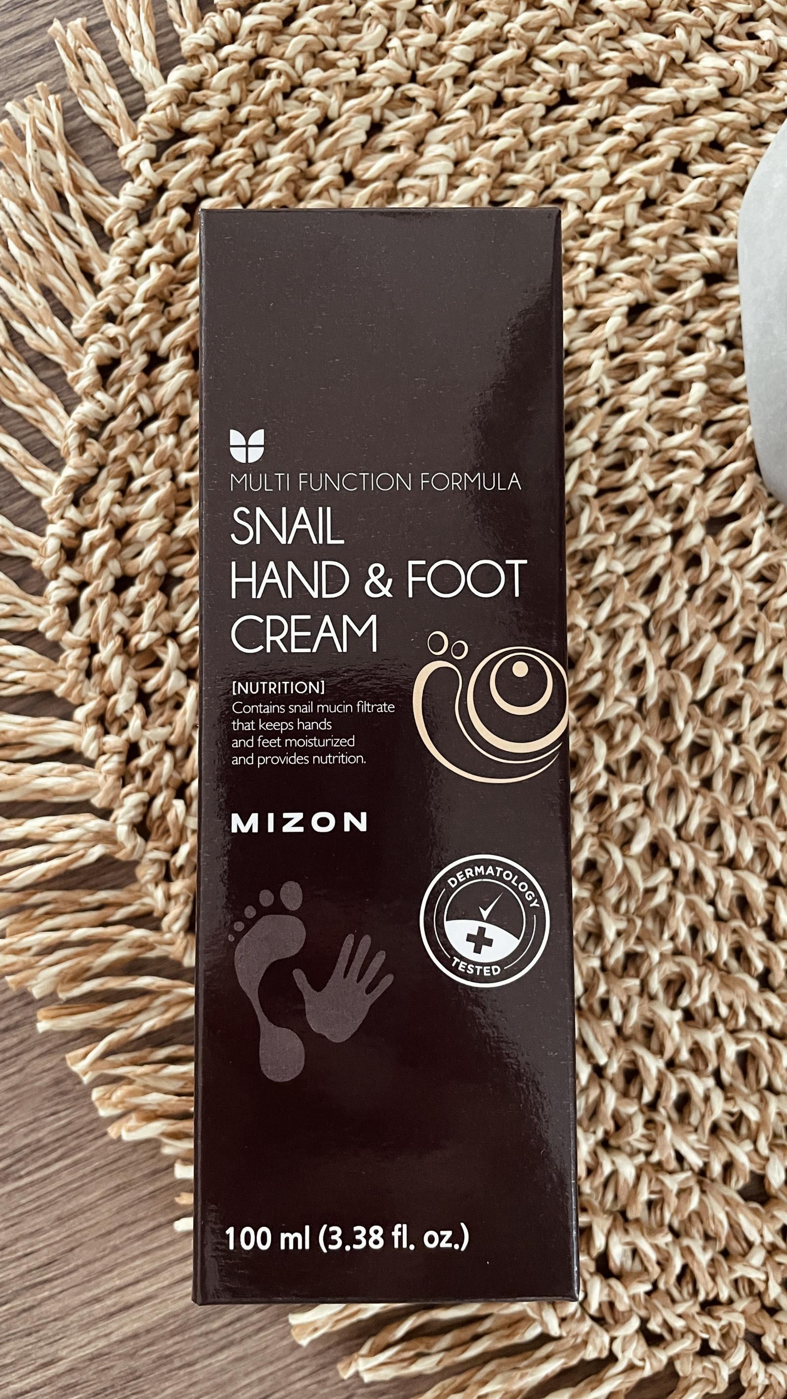 Mizon Snail Hand and Foot Cream este o crema dedicata ingrijirii mainilor si picioarelor, formulata cu filtrat de secretie de melc, cunoscut pentru proprietatile sale de regenerare si hidratare a pielii.