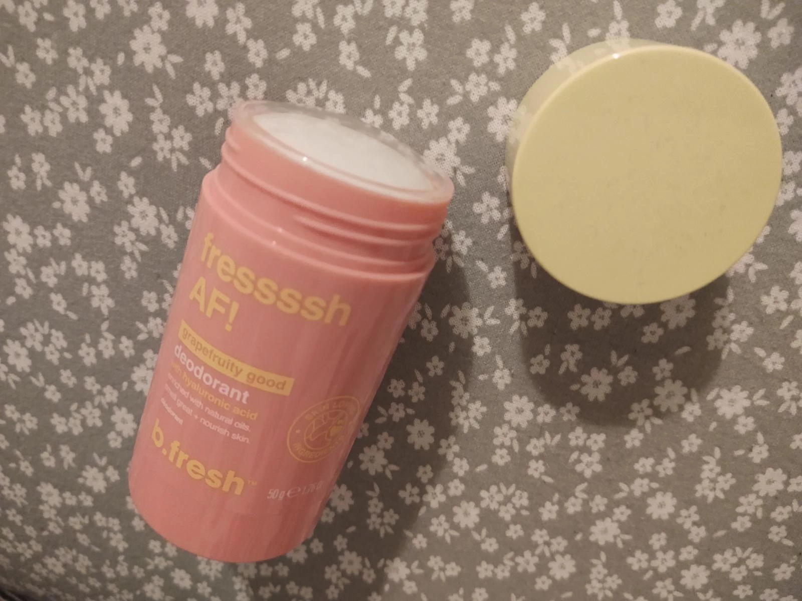 B.fresh Fressssh AF! Grapefruity Good Deodorant este un deodorant natural, fara aluminiu, fara alcool si fara parabeni, infuzat cu acid hialuronic. Este conceput pentru a mentine axilele uscate si fara miros pe tot parcursul zilei, in timp ce hidrataza si hraneste pielea. Deodorantul are o aroma racoritoare de grapefruit, care este atat revigoranta, cat si energizanta.