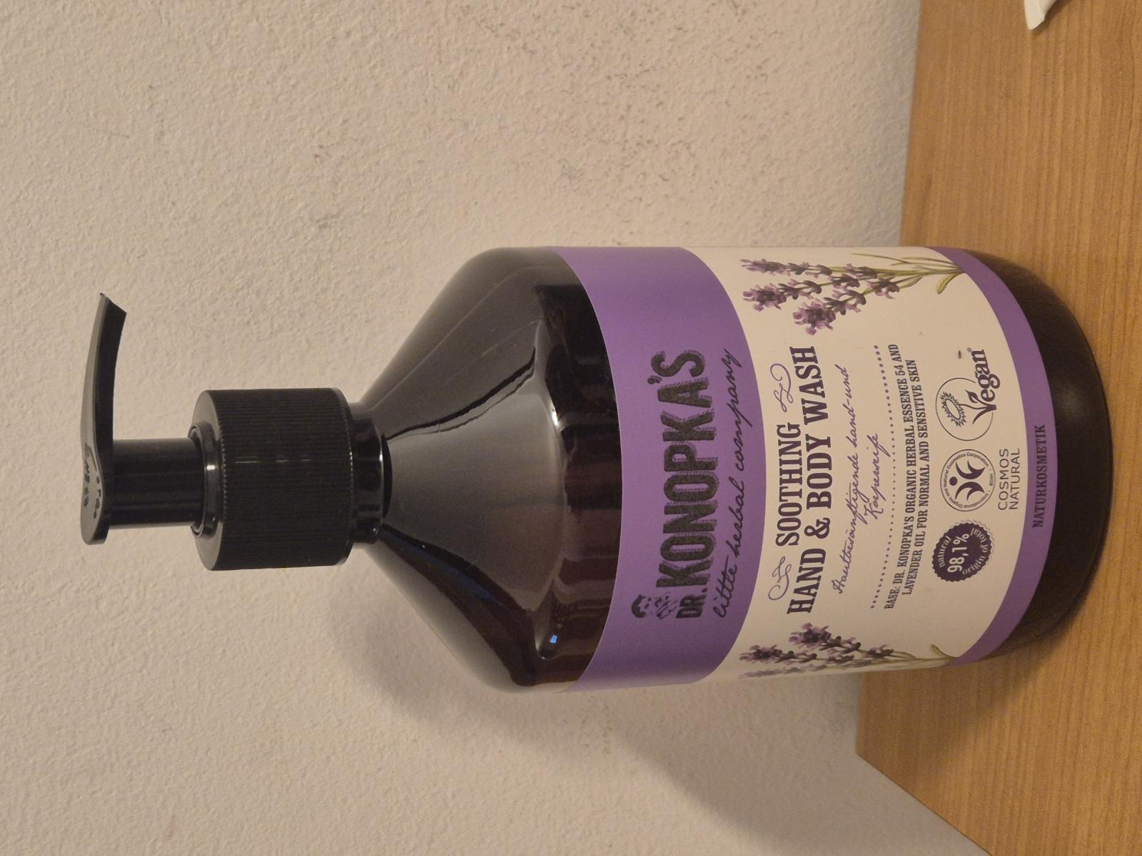Acest sapun lichid calmant pentru maini si corp semnat Dr. Konopka este formulat cu amestecul organic nr. 54, care regleaza si mentine nivelul optim de hidratare al pielii. Acest sapun lichid curata pielea cu blandete, are un efect calmant si hidratant si ajuta intens la hranirea pielii.