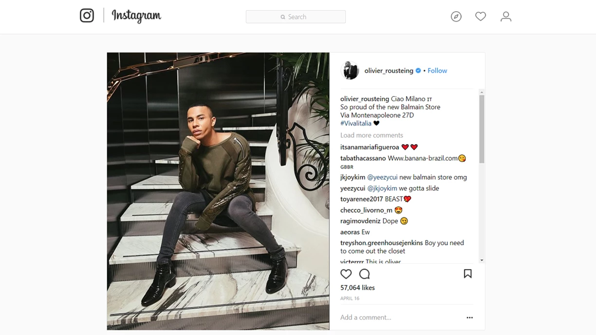Ce posteaza: De la fotografii cu vedete care poarta tinute Balmain - de exemplu Beyonce sau Brigitte Macron - pana la imagini de pe podium sau selfie-uri.