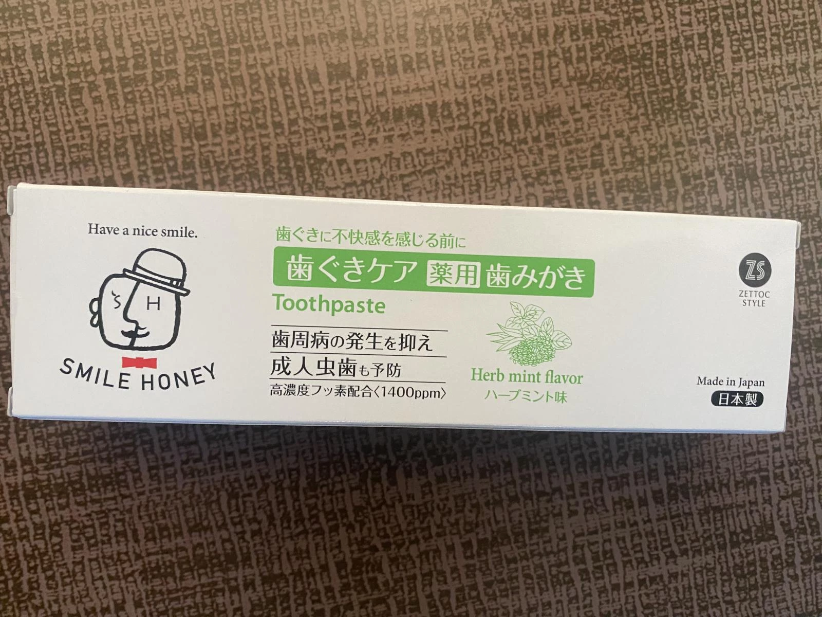 ZETTOC Smile Honey Pasta de Dinti Herb Mint - Protectie Gingivala si Anticarii cu Plante Naturale, 120 gr - Fabricat in Japonia