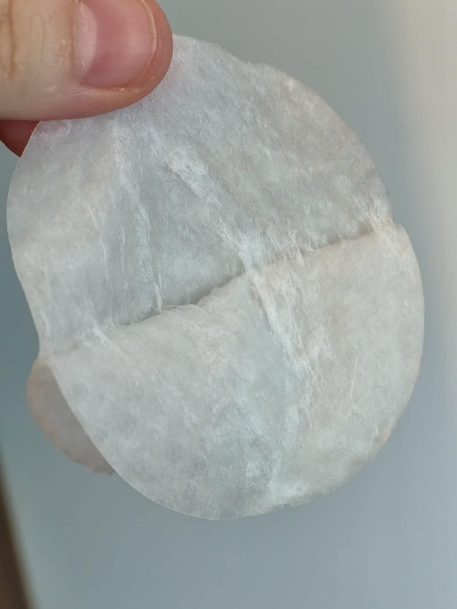 Dischetele sunt foarte subtiri si sunt imbibate in produs suficient cat sa nu se usuce in secunda 2 de cum le aplic pe fata. Discheta in sine se poate desface in 2 si devin 2 dischete si mai subtiri. Calmeaza excelent tenul si nu irita fata