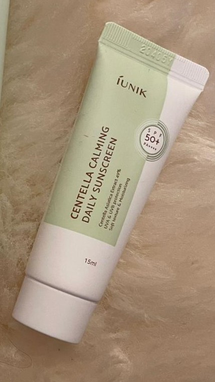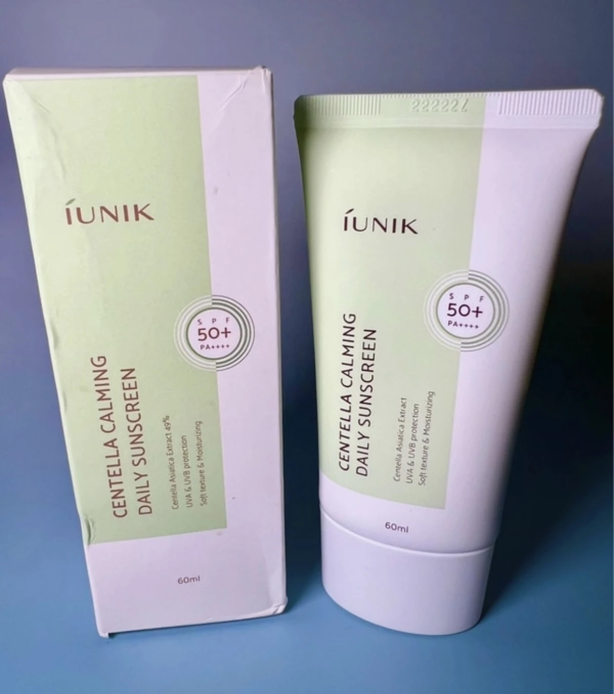 Oferind protectie SPF50+ PA++++, Centella Calming Daily Sun Cream de la iUNIK este un SPF organic, fara parfum, imbogatit cu o doza mare de extract de Centella Asiatica (49%) pentru a calma si ameliora pielea sensibila, predispusa la roseata.