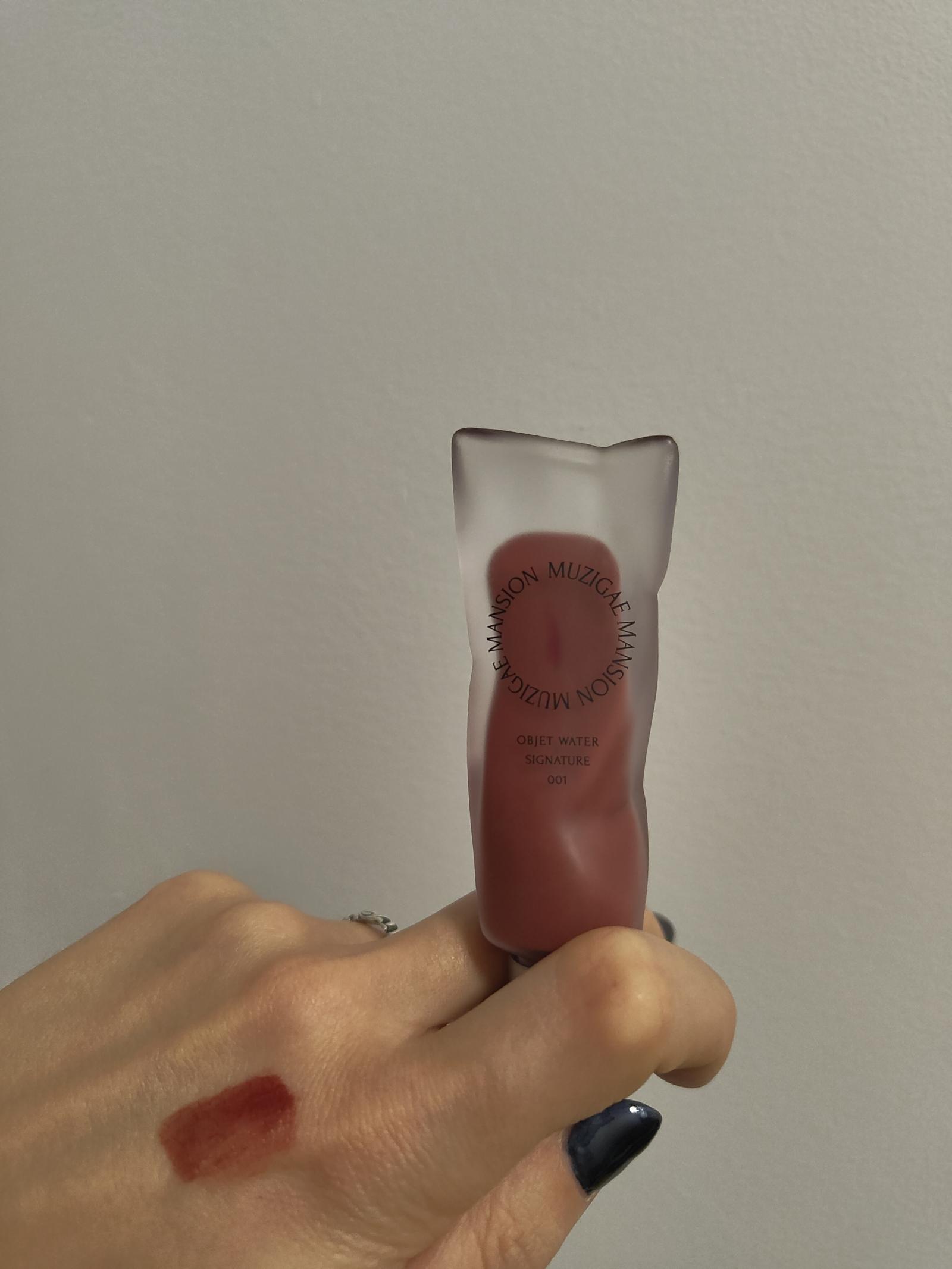 Muzigae Mansion Objet Water este un ruj lichid cu efect difuz, ce se transforma instant dintr-o textura apoasa intr-un finisaj mat si catifelat. Acesta adera perfect fara a lasa urme, oferind o culoare intensa si durabila, fara efect lipicios.
