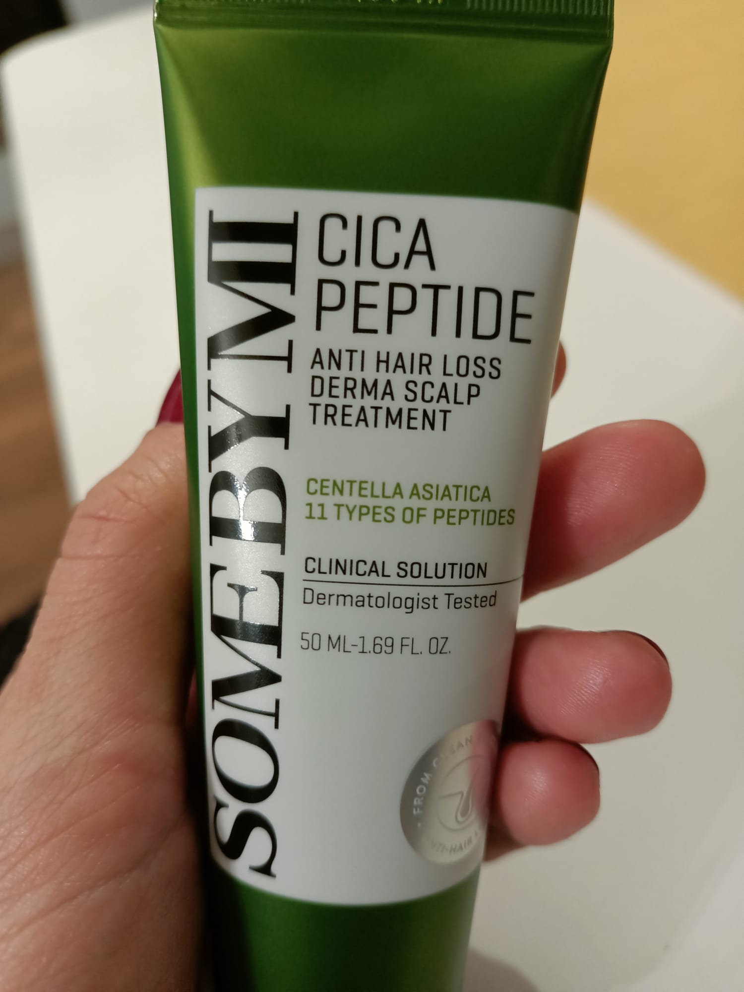 Some By Mi Cica Peptide Derma Scalp Conditioner este un balsam anti-cadere special creat pentru ingrijirea parului fragil sau deteriorat. Formula sa este imbogatita cu extract de Centella Asiatica si un complex de 11 tipuri de peptide, ce ajuta la fortifierea firului de par si revitalizarea acestuia.