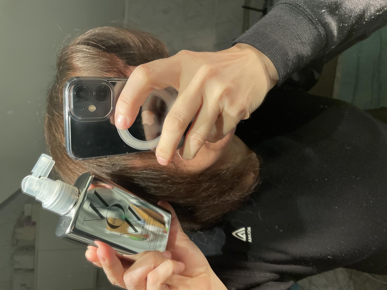 6. Uscati parul cu uscatorul de par folosind o perie rotunda. Asigurati-va ca directionati caldura in jos pentru a activa spray-ul.