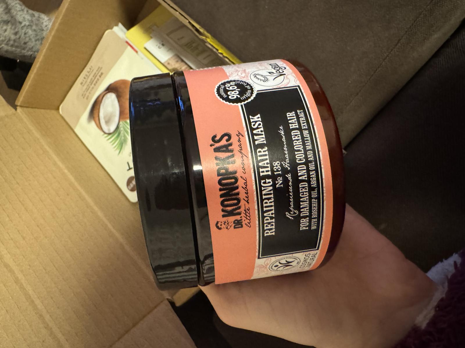 Am apreciat foarte mult impachetarea premium, am primit-o cadou de la sora mea. Masca are ingrediente naturale si se simte diferenta dupa prima folosire. Parul meu vopsit arata acum mult mai sanatos si stralucitor.