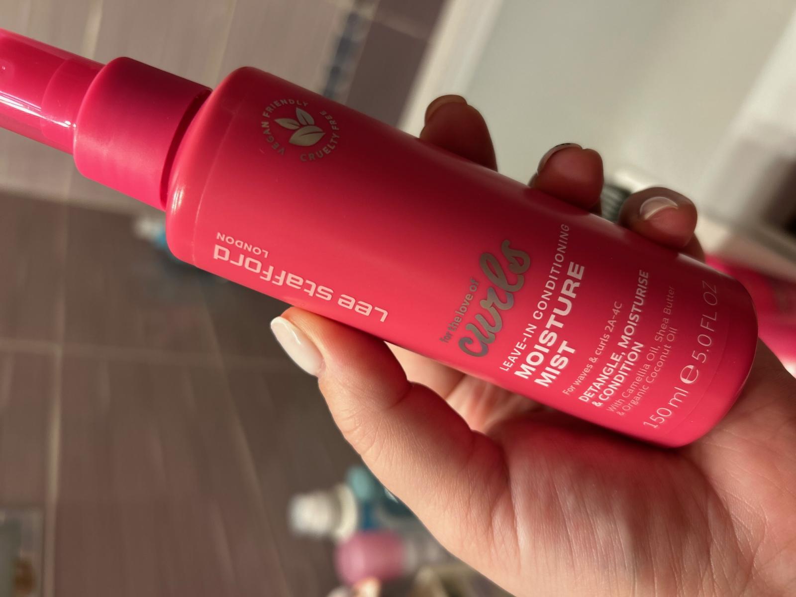Am început să folosesc Lee Stafford For The Love Of Curls Leave-in Conditioner Moisture Mist între spălări și chiar ajută la reîmprospătarea buclelor. Hidratează părul fără să îl încarce și face buclele să arate din nou definite. Îmi place că se aplică foarte ușor și lasă părul moale.
