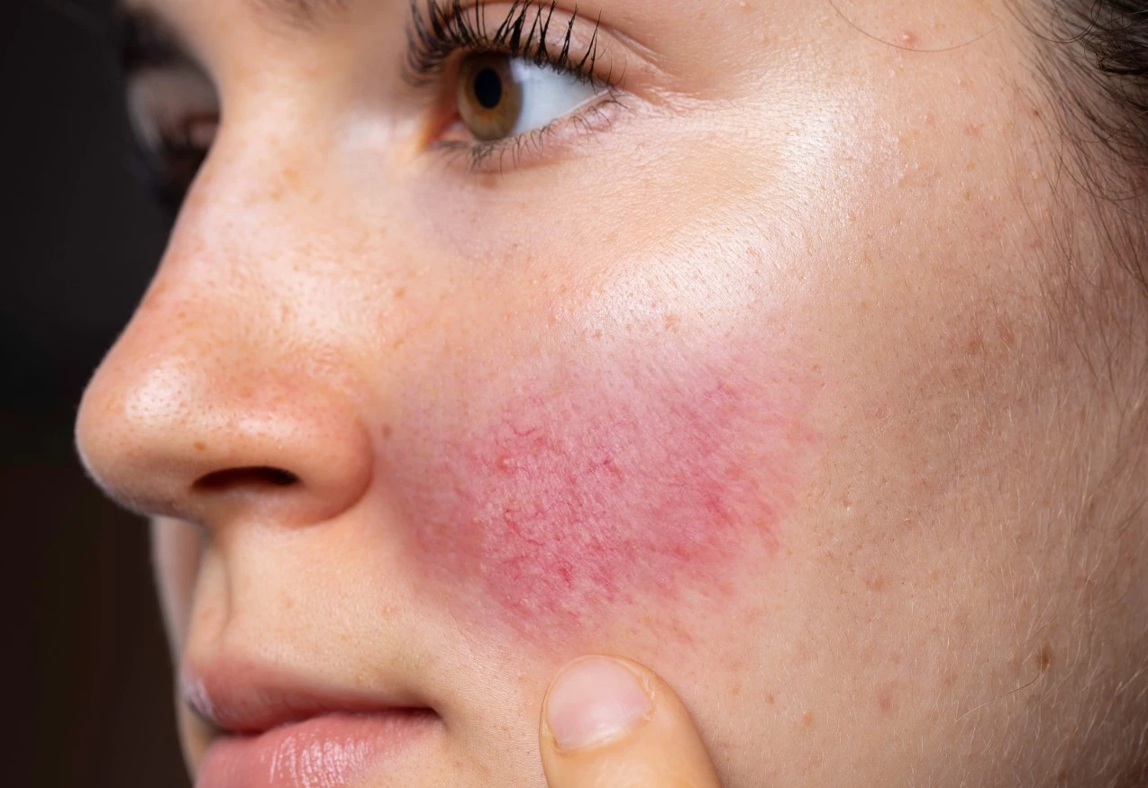 Eritem facial persistent: Roșeață constantă în zona centrală a feței.