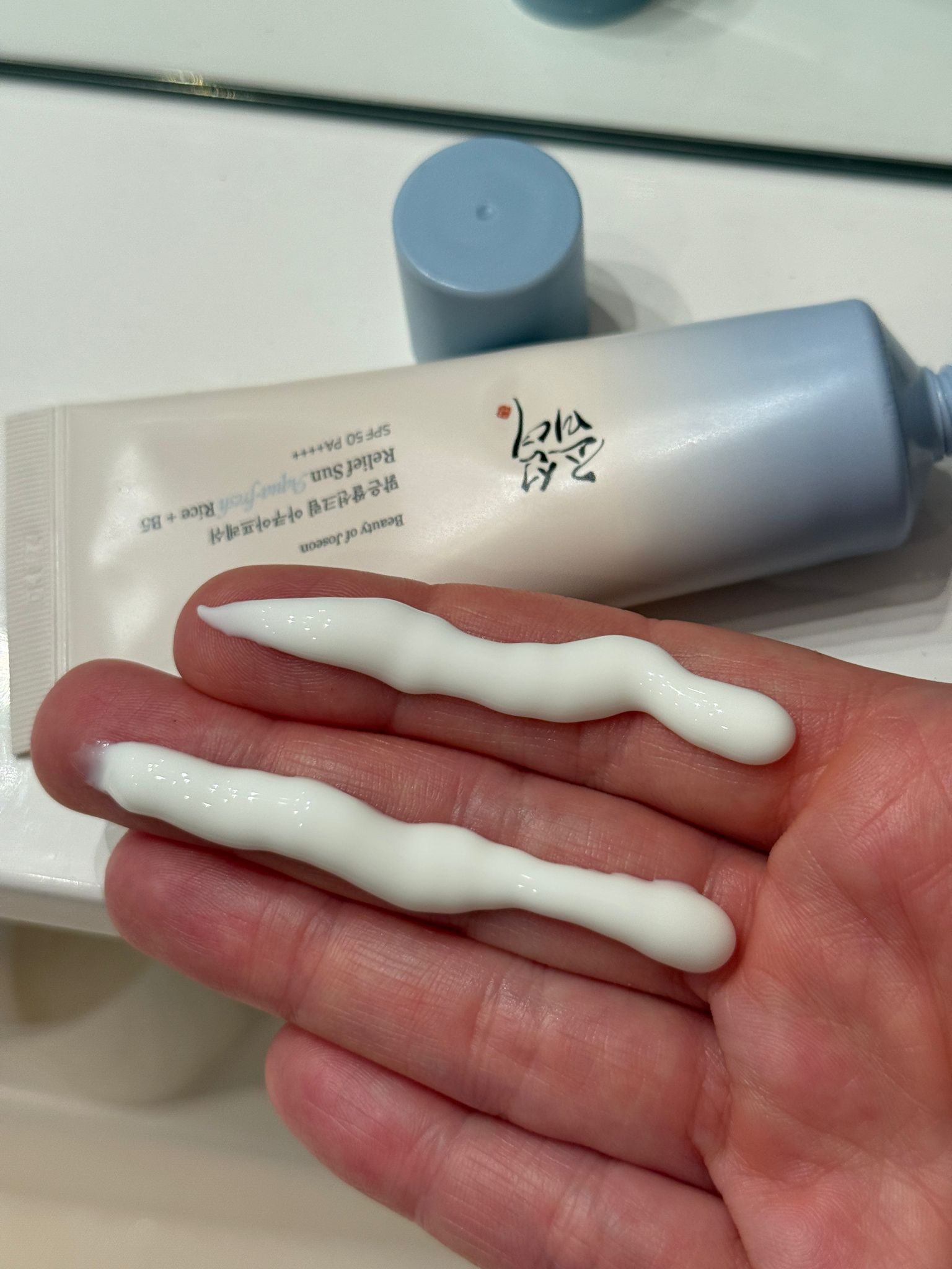 Am testat crema Beauty of Joseon Relief Sun Aqua-Fresh SPF50+ (50 ml) și sunt încântată de rezultate. Textura sa ușoară, asemănătoare unei loțiuni, se absoarbe rapid, lăsând pielea hidratată și fără urme albe. Conține 30% apă de orez, cunoscută pentru proprietățile sale calmante și iluminatoare, și panthenol (vitamina B5), care întărește bariera de hidratare a pielii. După aplicare, tenul meu a rămas proaspăt și luminos întreaga zi. Este potrivită pentru tenul mixt și gras, oferind protecție solară eficientă fără senzație de greutate. Recomand aplicarea unei cantități adecvate și reaplicarea la fiecare 2-3 ore pentru o protecție optimă. Este un produs excelent pentru protecție solară zilnică și hidratare.