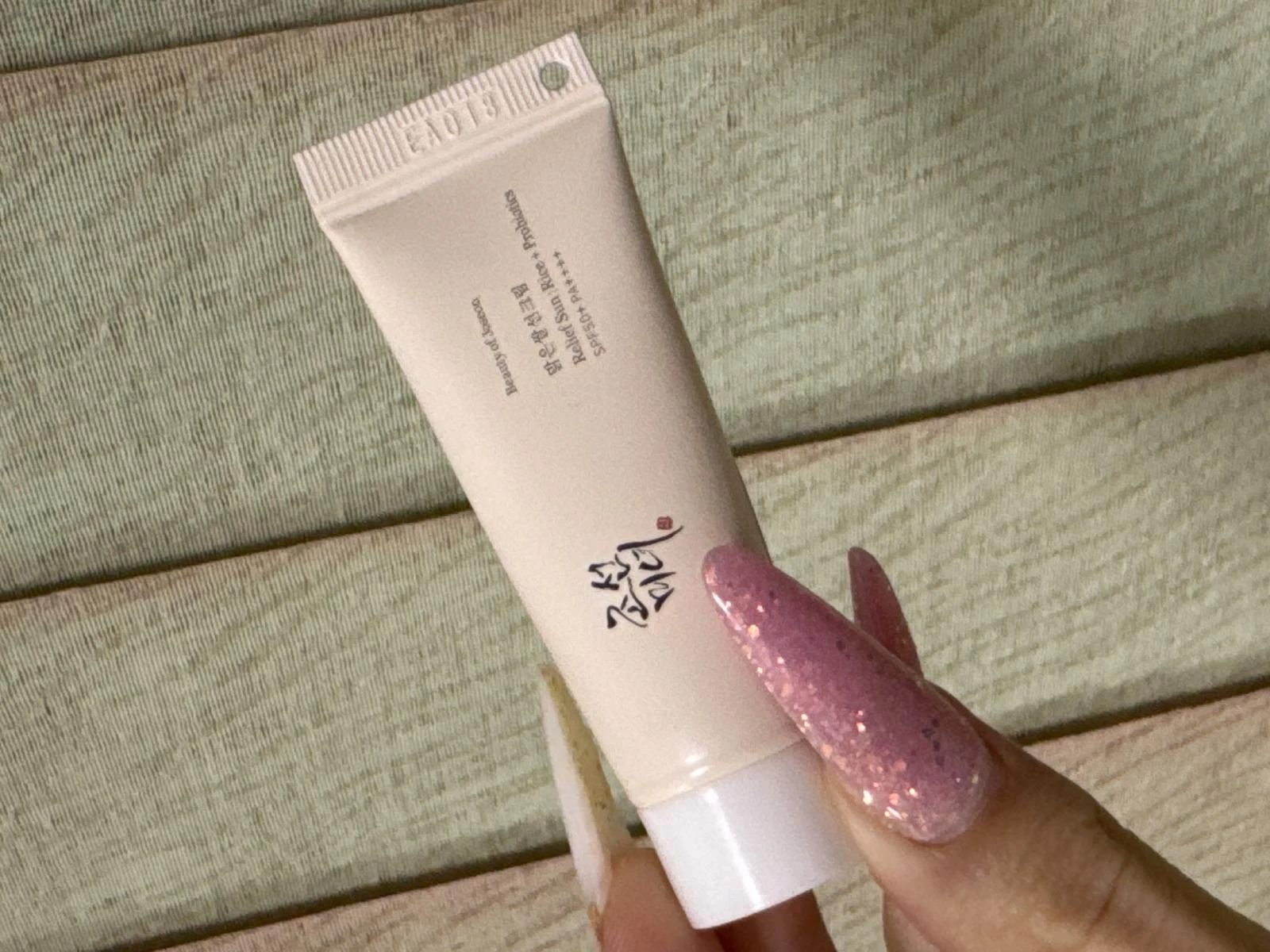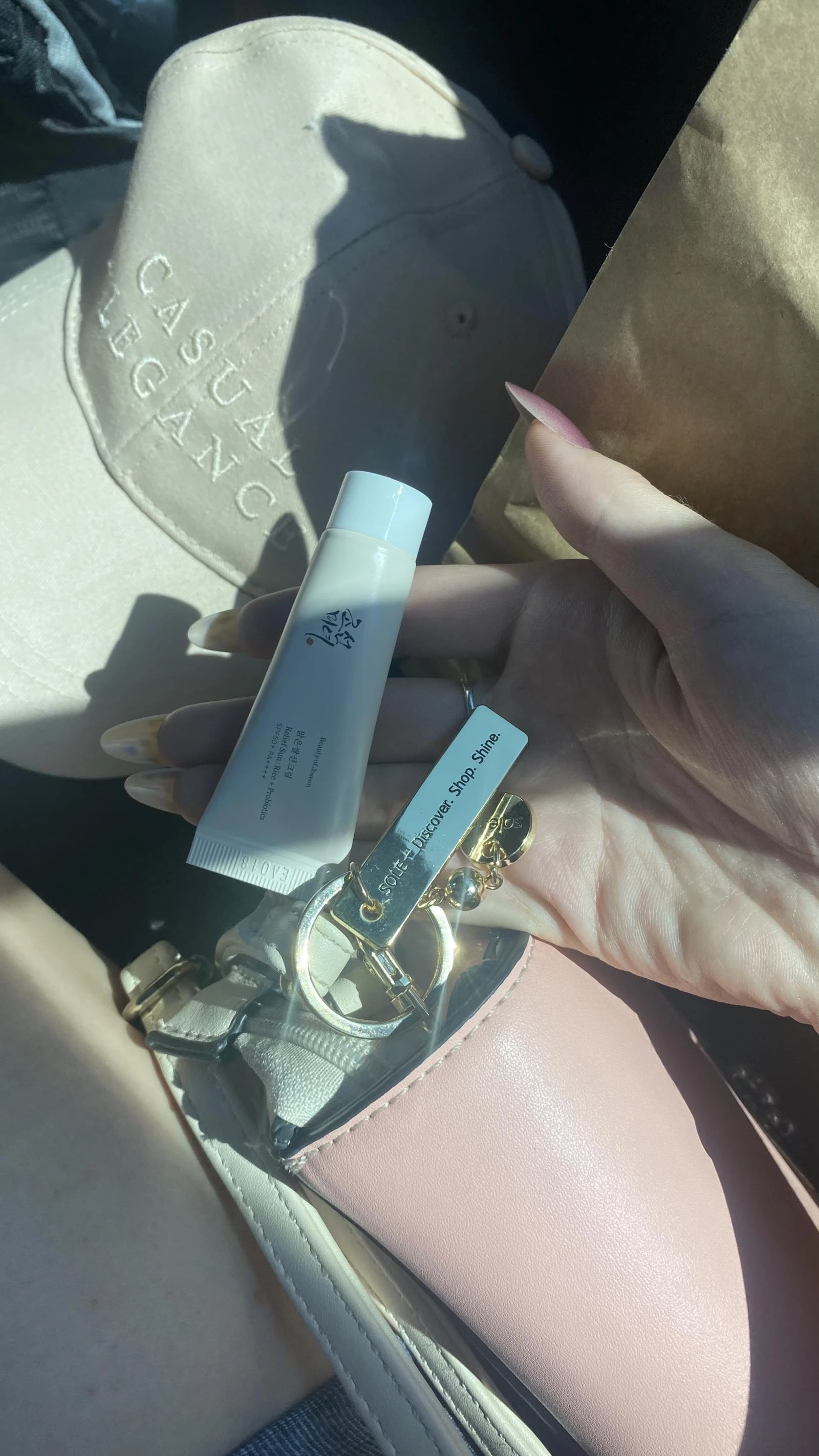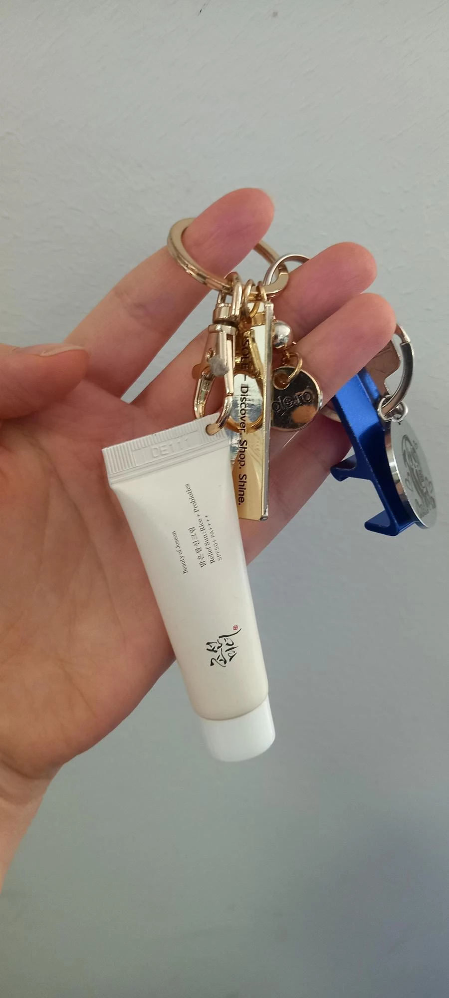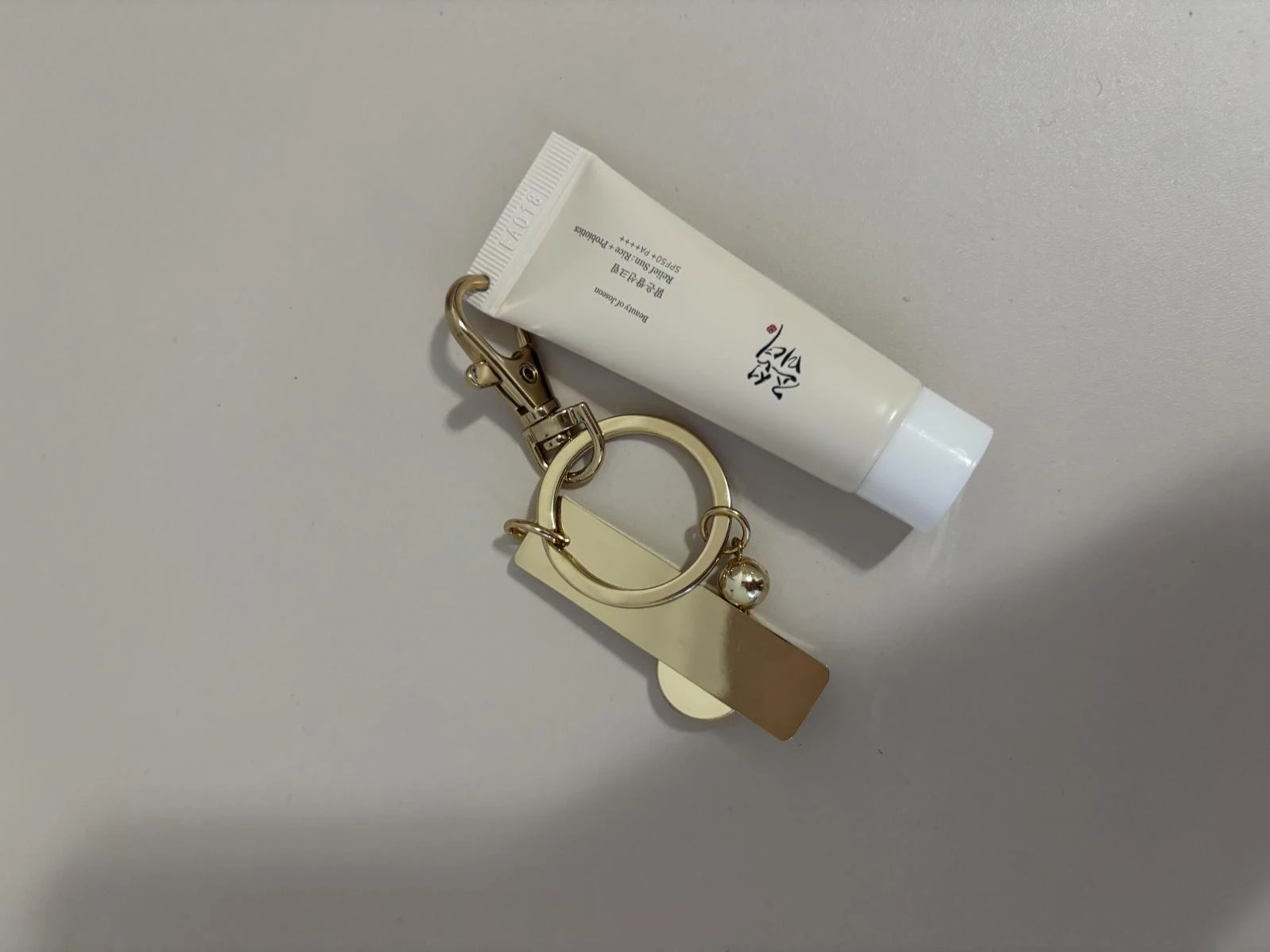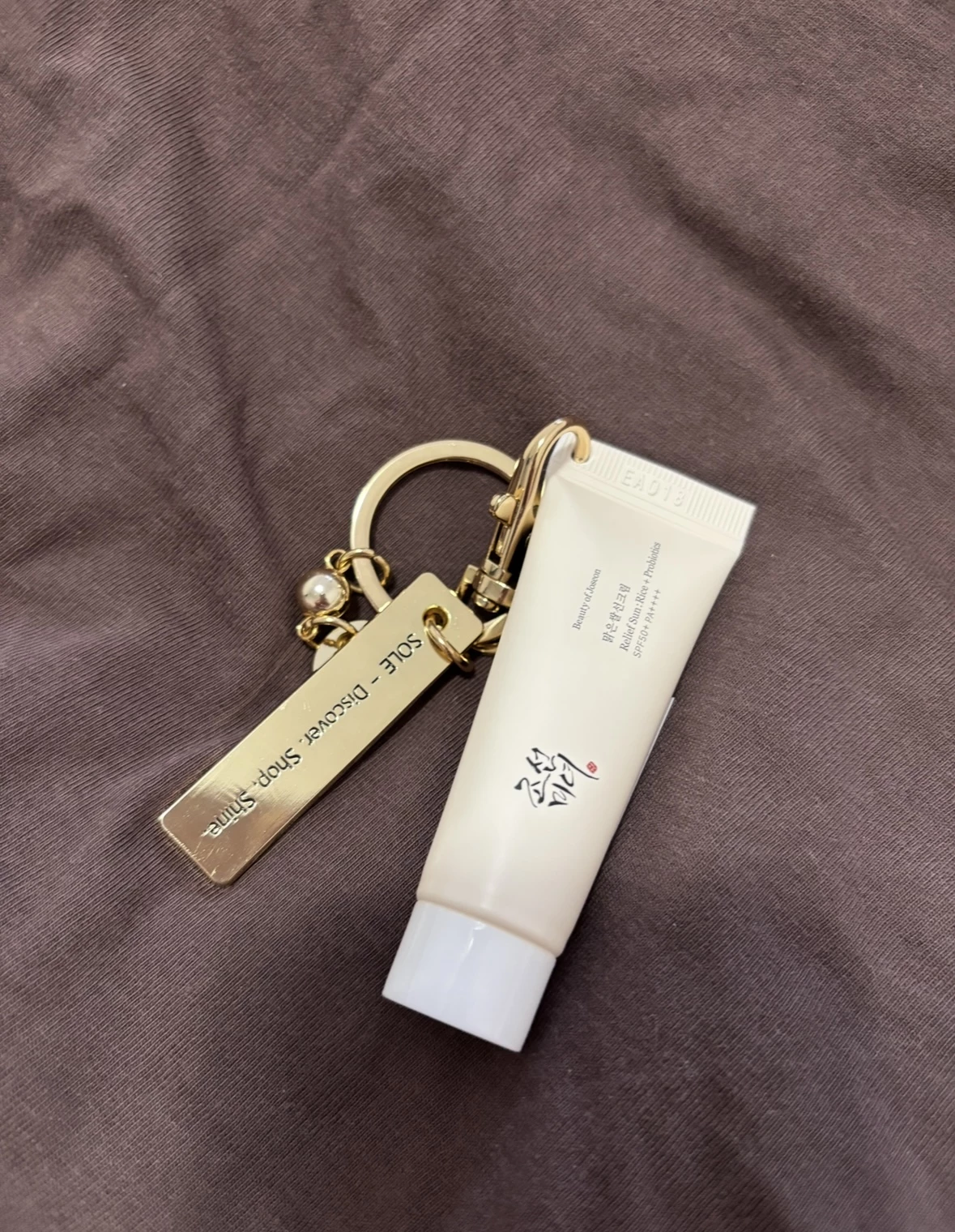 Transforma-ti rutina zilnica de ingrijire intr-un moment chic si sofisticat oriunde te-ai afla cu crema de protectie solara mini-size Beauty of Joseon - Relief Sun: Rice + Probiotics Sunscreen SPF 50+ PA++++ (10 ml), acum insotita de brelocul auriu premium SOLE, in editie limitata.