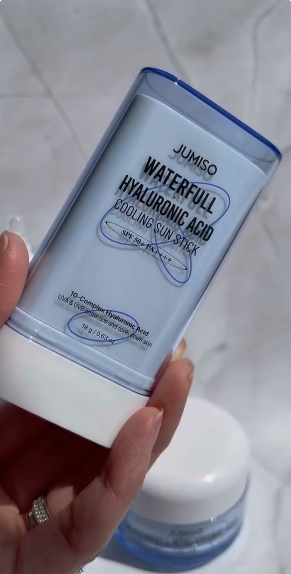 Jumiso Waterfull Hyaluronic Acid Cooling Sun Stick este un stick solar practic, creat pentru zilele in care vrei protectie ridicata, confort imediat si o senzatie proaspata pe piele. Face parte din gama Waterfull si se adreseaza in special pielii uscate si sensibile, care are nevoie de hidratare constanta si de o formula placuta la aplicare si reaplicare. Ofera protectie UVA si UVB SPF50+ PA++++, iar efectul sau racoritor ajuta pielea sa se simta instant mai relaxata.