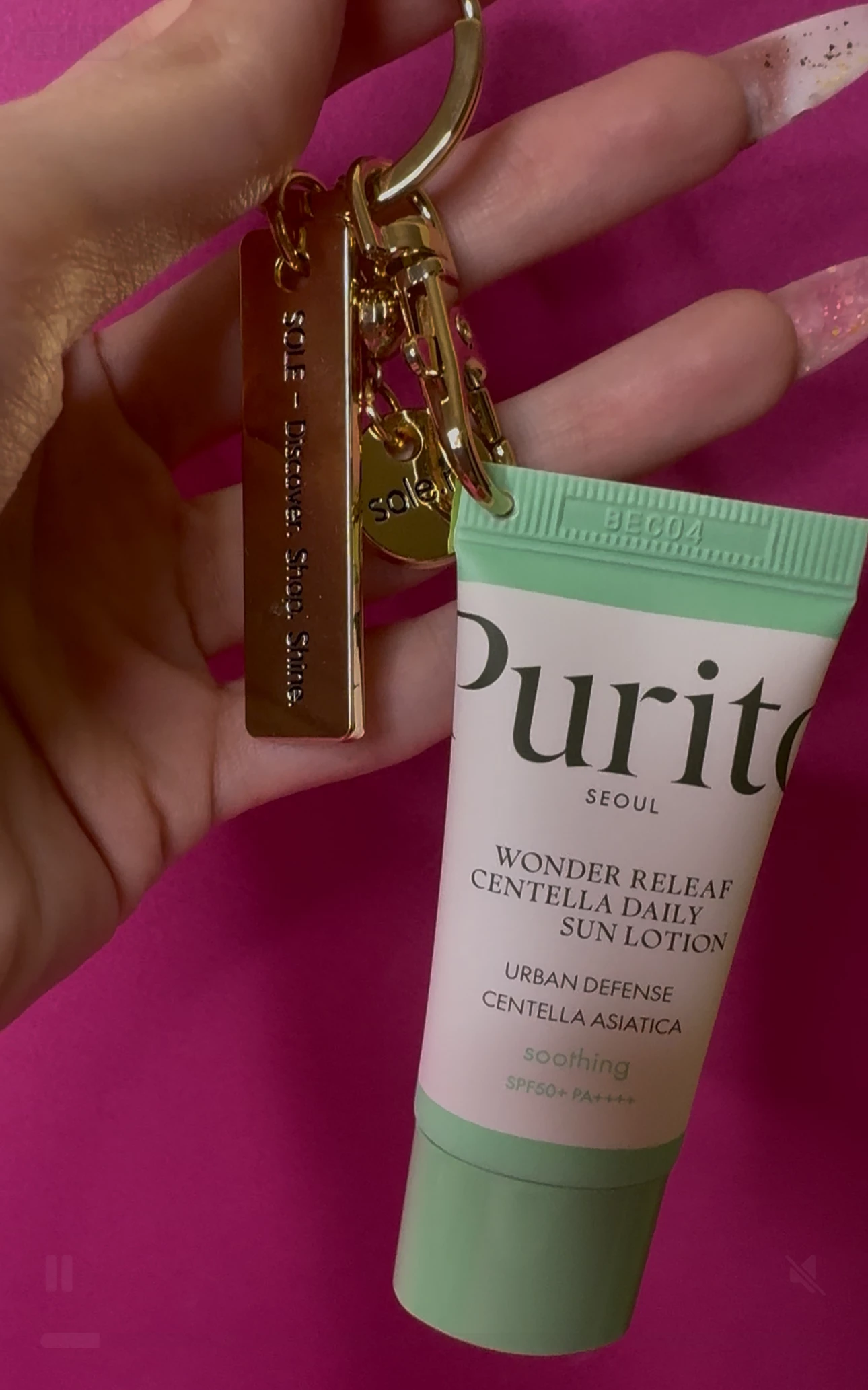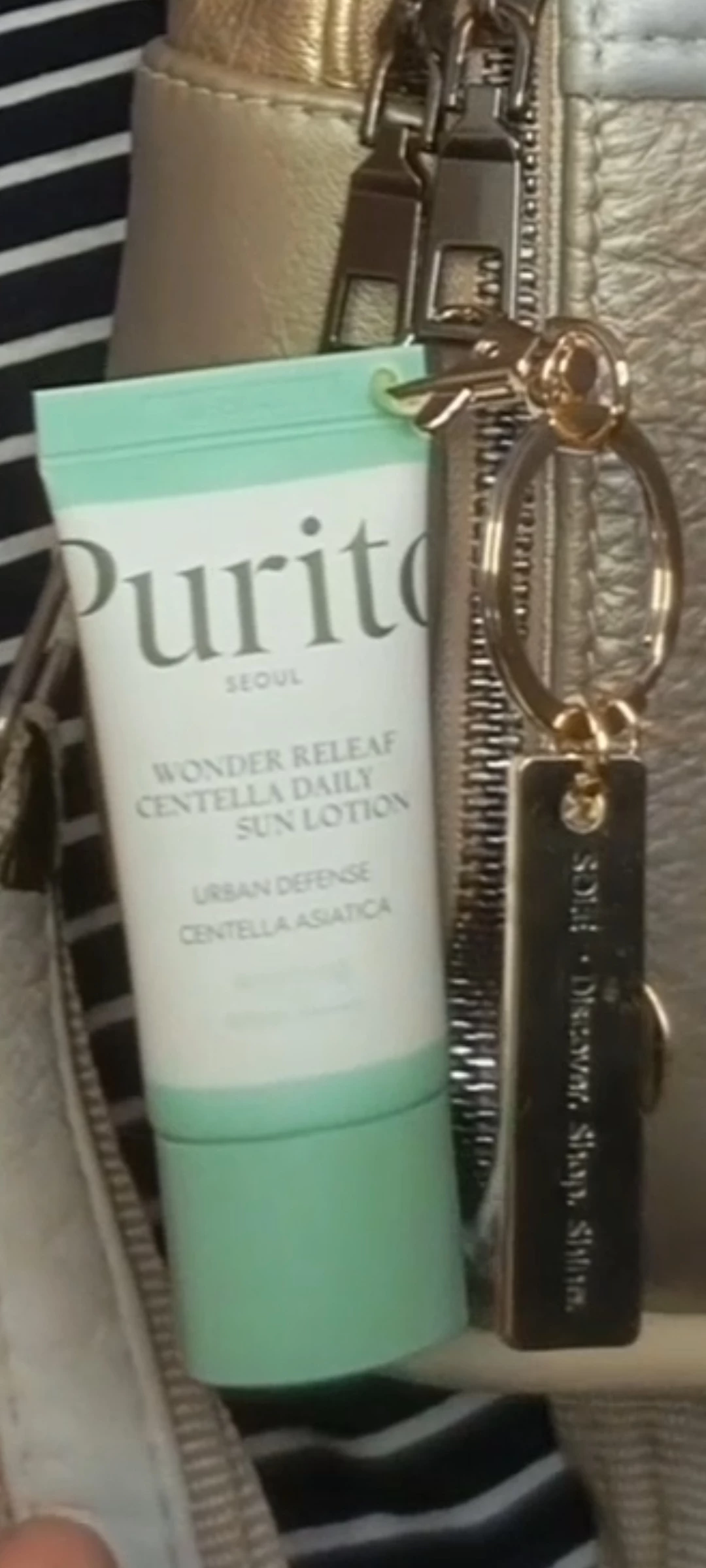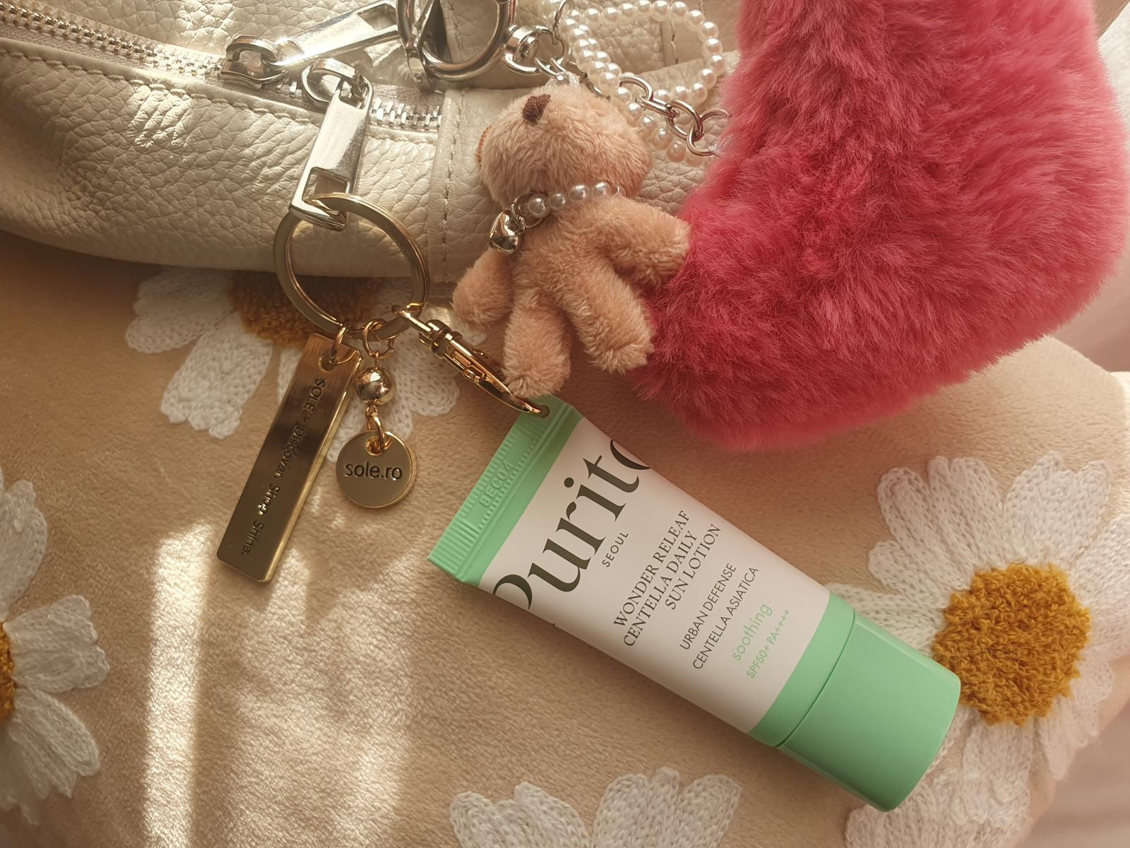 SPF TO GO - Breloc auriu premium + Purito Wonder Releaf Centella Daily Sun Lotion SPF 50+ PA++++ mini (15 ml) - editie limitata