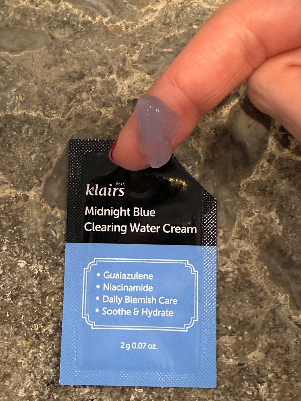 Am primit această mostră de la o comandă, am aplicat-o în 2 seri, după acizi și apoi după retinol. Este o cremă gel cu absorbție rapidă și are o culoare plăcută, albastră.