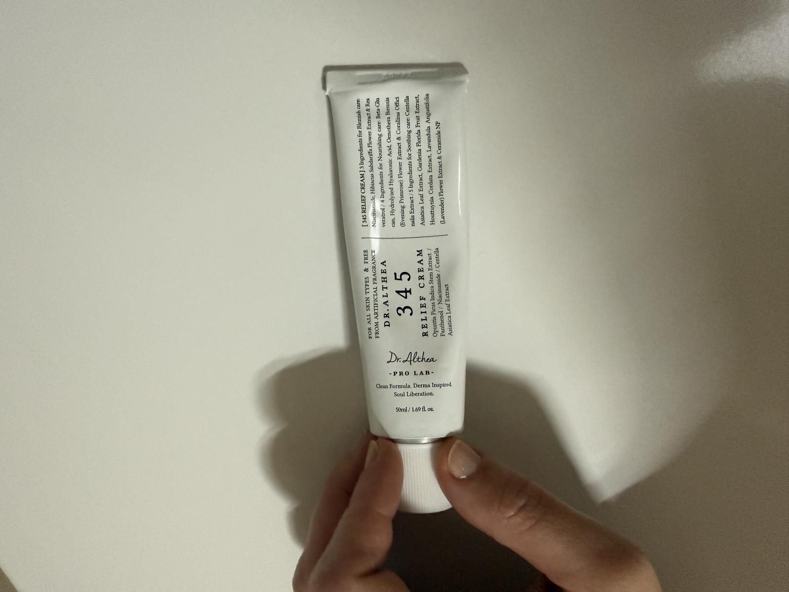 Curata fata cu un produs delicat, potrivit tipului tau de piele. Aplica mai intai produsele cu textura mai fluida, precum tonerul. Aplica o cantitate adecvata de 345 Relief Cream ca ultim pas in rutina ta de ingrijire.