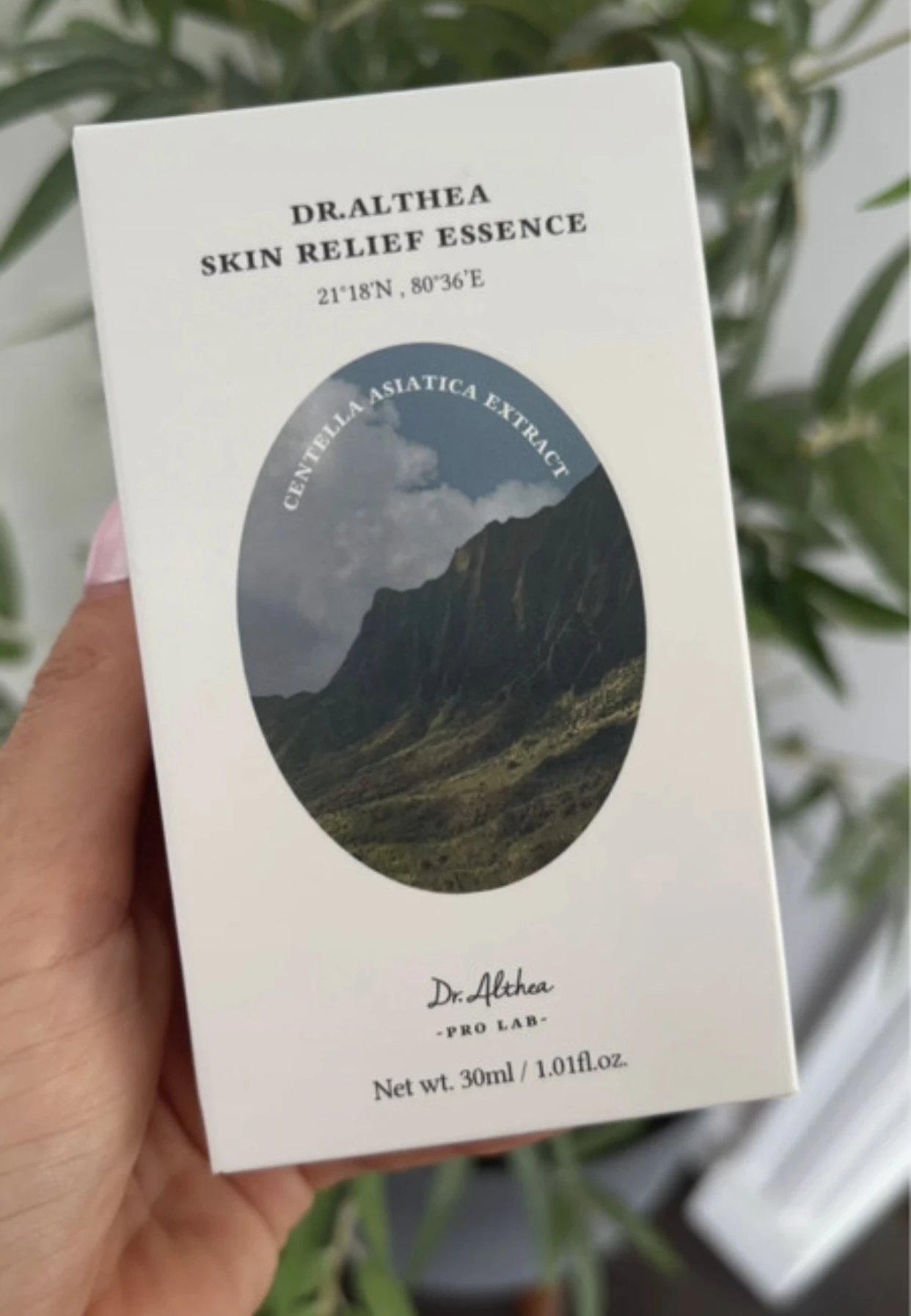 Dr.Althea Skin Relief Essence este o esenta usoara, cu absorbtie rapida, conceputa pentru a calma si proteja pielea sensibila sau iritata de agresiunile externe. Formula sa imbina extractul de Centella Asiatica, recunoscut pentru proprietatile sale regenerante, cu ceramide si extract de floare de colt, ce fortifica bariera cutanata. Spirulina si musetelul contribuie la reducerea inflamatiilor, in timp ce cele 6 tipuri de acid hialuronic ofera hidratare intensa in profunzime.