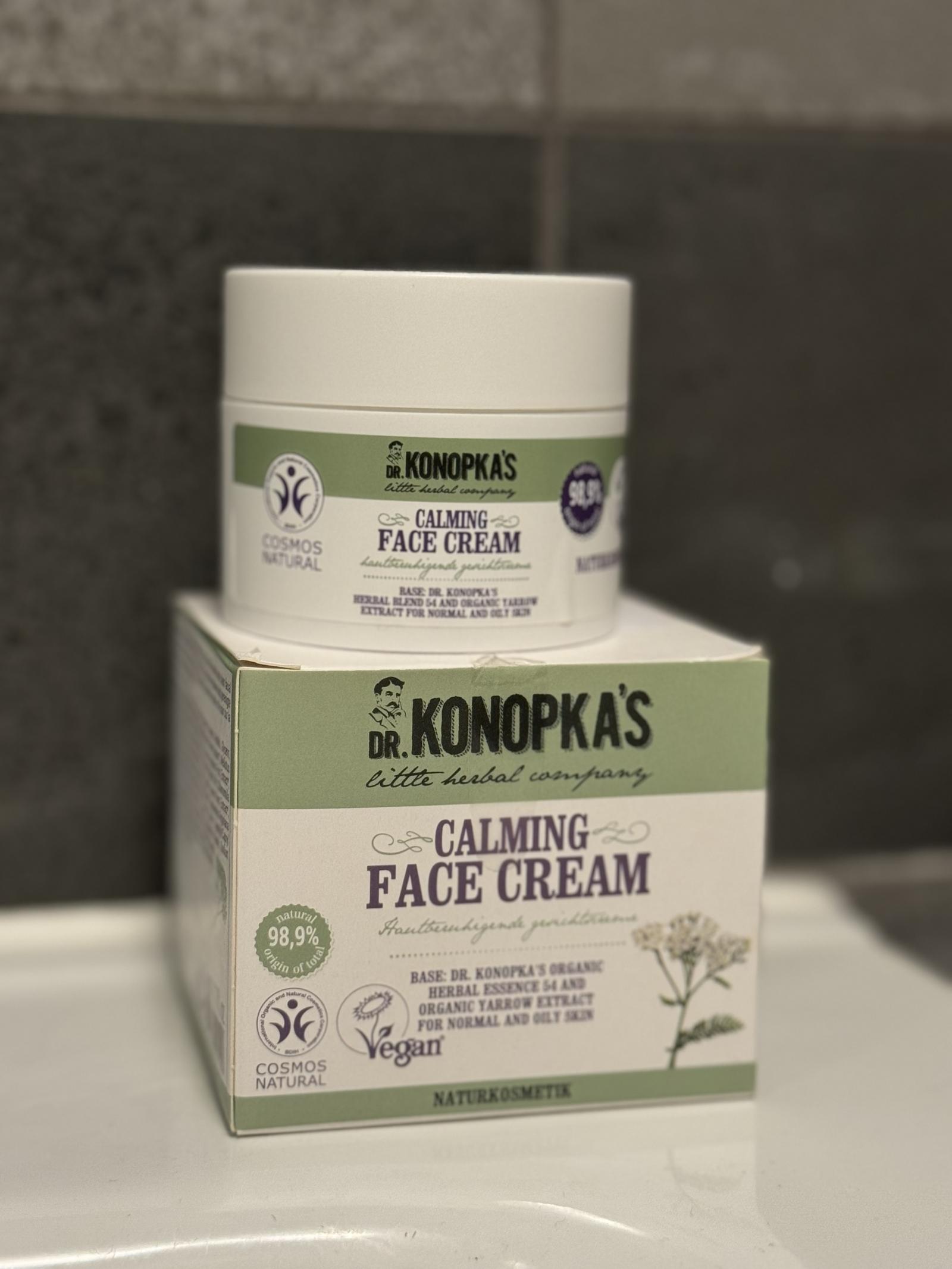 Folosesc crema asta de vreo trei saptamani si chiar simt o diferenta. Tenul meu e mixt si tinde sa se inroseasca usor, dar de cand am inceput cu Dr. Konopka am observat ca iritatiile s-au calmat considerabil. Textura e usoara, se absoarbe repede si nu lasa acea senzatie grasa pe care o urasc la alte creme. Mi-a placut si ca ingredientele sunt naturale, certificat COSMOS, ceea ce pentru mine conteaza mult. Am primit si mostre gratuite in colet, lucru care m-a surprins placut — am descoperit cateva produse pe care acum vreau sa le incerc.