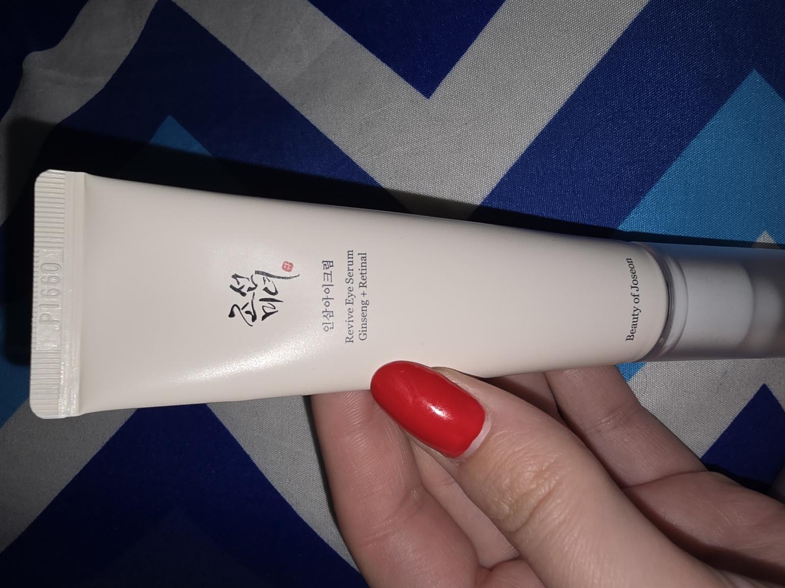 Am folosit serul pentru ochi **Beauty of Joseon Revive** cu Ginseng și Retinal. Textura este ușoară și se absoarbe rapid, hidratare și revitalizează zona ochilor. După câteva săptămâni, liniile fine și cearcănele s-au redus, iar pielea este mai fermă. Recomand cu precauție pentru ten sensibil, evitând zona pleoapelor.