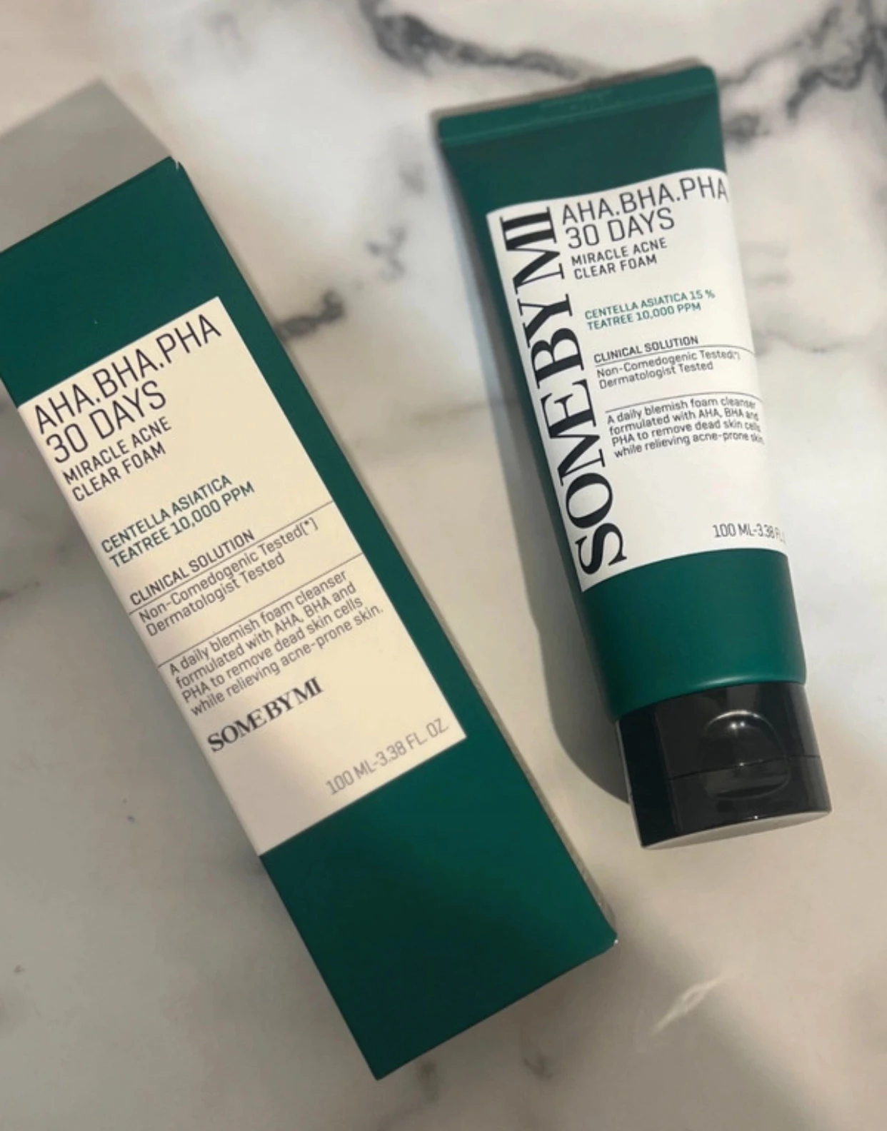Am avut probleme serioase cu acneea si dupa cateva saptamani de utilizare am observat o imbunatatire vizibila. Spuma curata perfect fara sa usuce si lasa tenul catifelat. Am primit si niste mostre dragute de la alte produse Some By Mi in colet, ceea ce a fost o surpriza placuta. Livrarea a fost super rapida, a doua zi produsul era deja la mine.