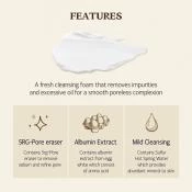 SKINFOOD Egg White Perfect Pore Cleansing Foam este o spuma de curatare revigoranta, formulata cu albumina si extract de galbenus de ou pentru a indeparta eficient machiajul si a elimina impuritatile si excesul de sebum din pori. Aceasta lasa pielea neteda si cu o textura uniforma, rafinand porii si contribuind la un aspect sanatos si curat al tenului.