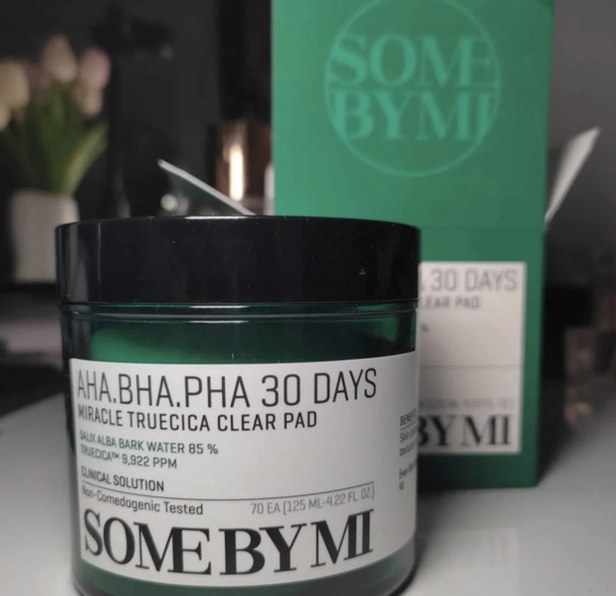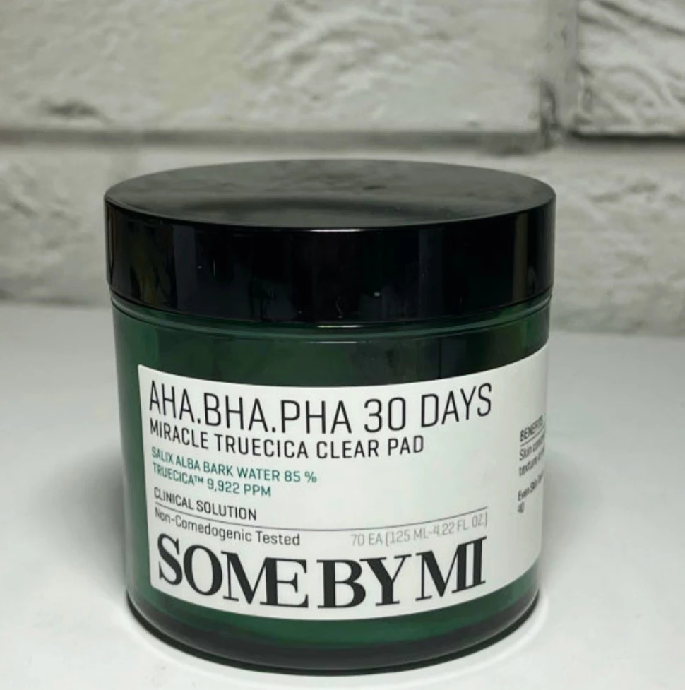 AHA.BHA.PHA 30 Days Miracle Truecica Clear Pad de la SOME BY MI sunt dischete duble, imbibate intr-un amestec echilibrat de AHA, BHA si PHA, concepute pentru a exfolia delicat, a curata porii si a indeparta celulele moarte, in timp ce regleaza excesul de sebum.
