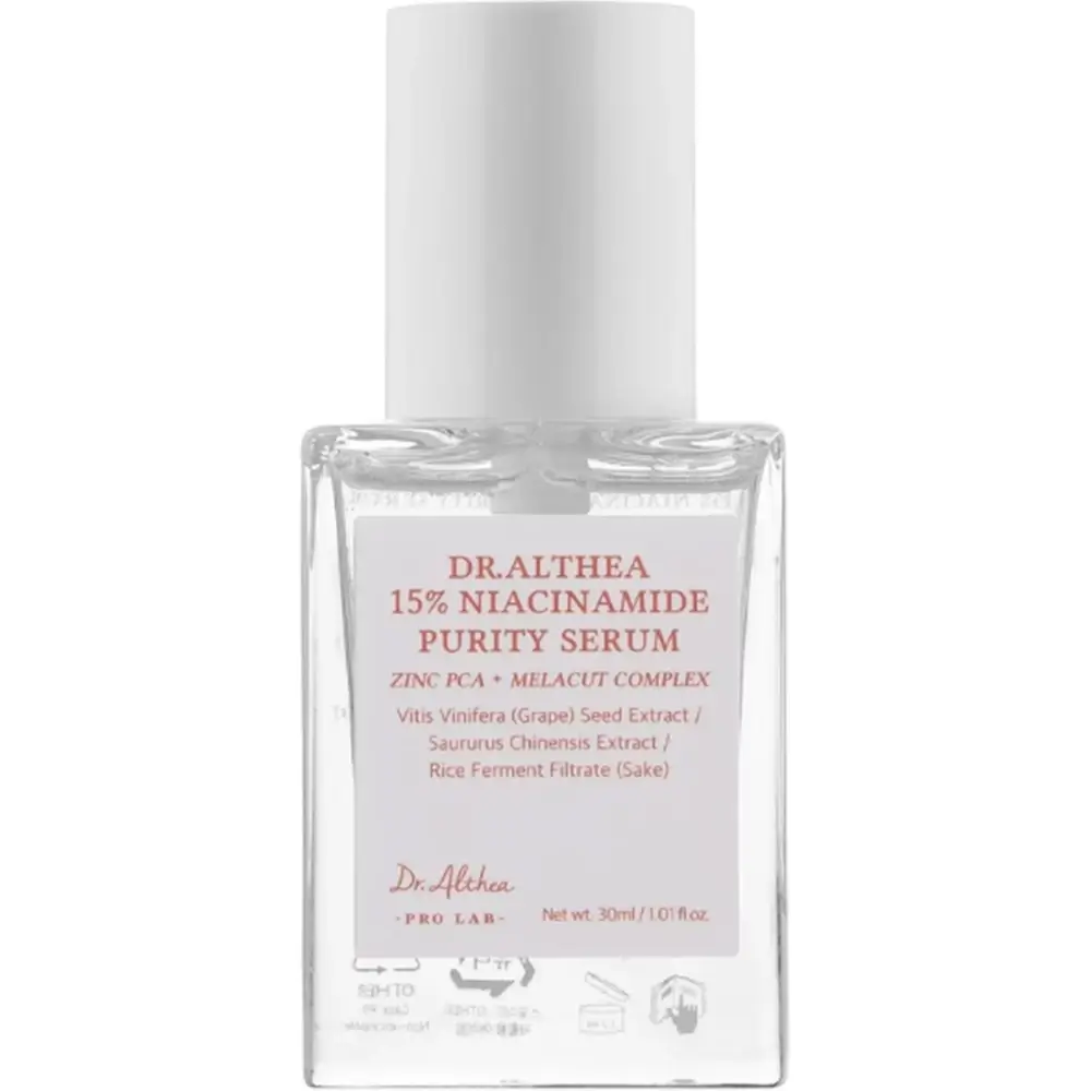 Descopera secretul unui ten uniform si luminos cu Dr. Althea 15% Niacinamide Purity Serum, un ser concentrat conceput pentru a imbunatati textura pielii, reduce petele pigmentare si echilibra excesul de sebum.