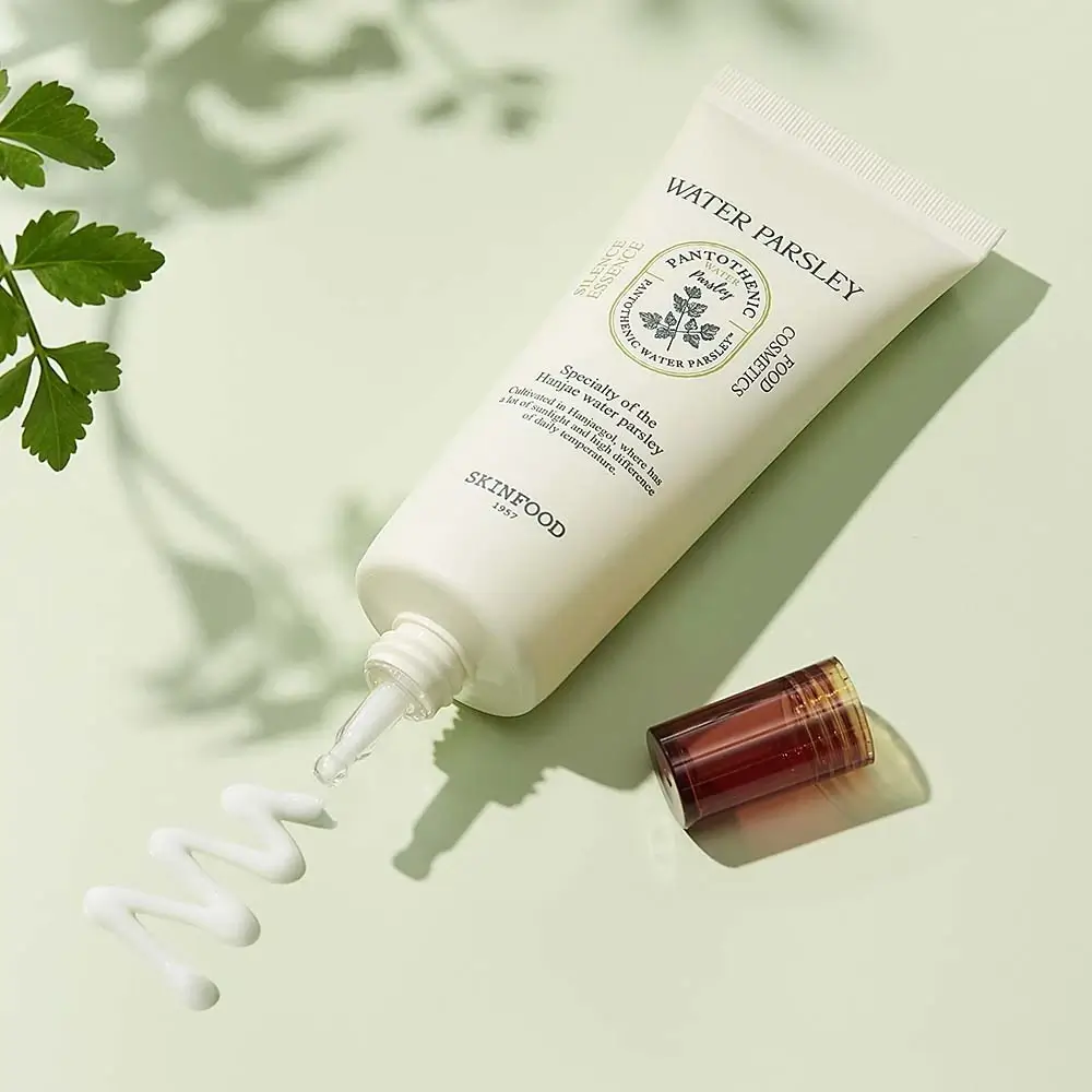SKINFOOD Pantothenic Water Parsley Silence Essence este o esenta zilnica cu extract natural de patrunjel de apa si acid pantotenic, conceputa pentru a mentine echilibrul optim intre hidratare si nivelul de sebum, contribuind la calmarea pielii sensibile. Formula sa bogata si hranitoare este ideala pentru tenul care necesita un plus de ingrijire si echilibrare, in special pentru pielea predispusa la imperfectiuni si iritatii.