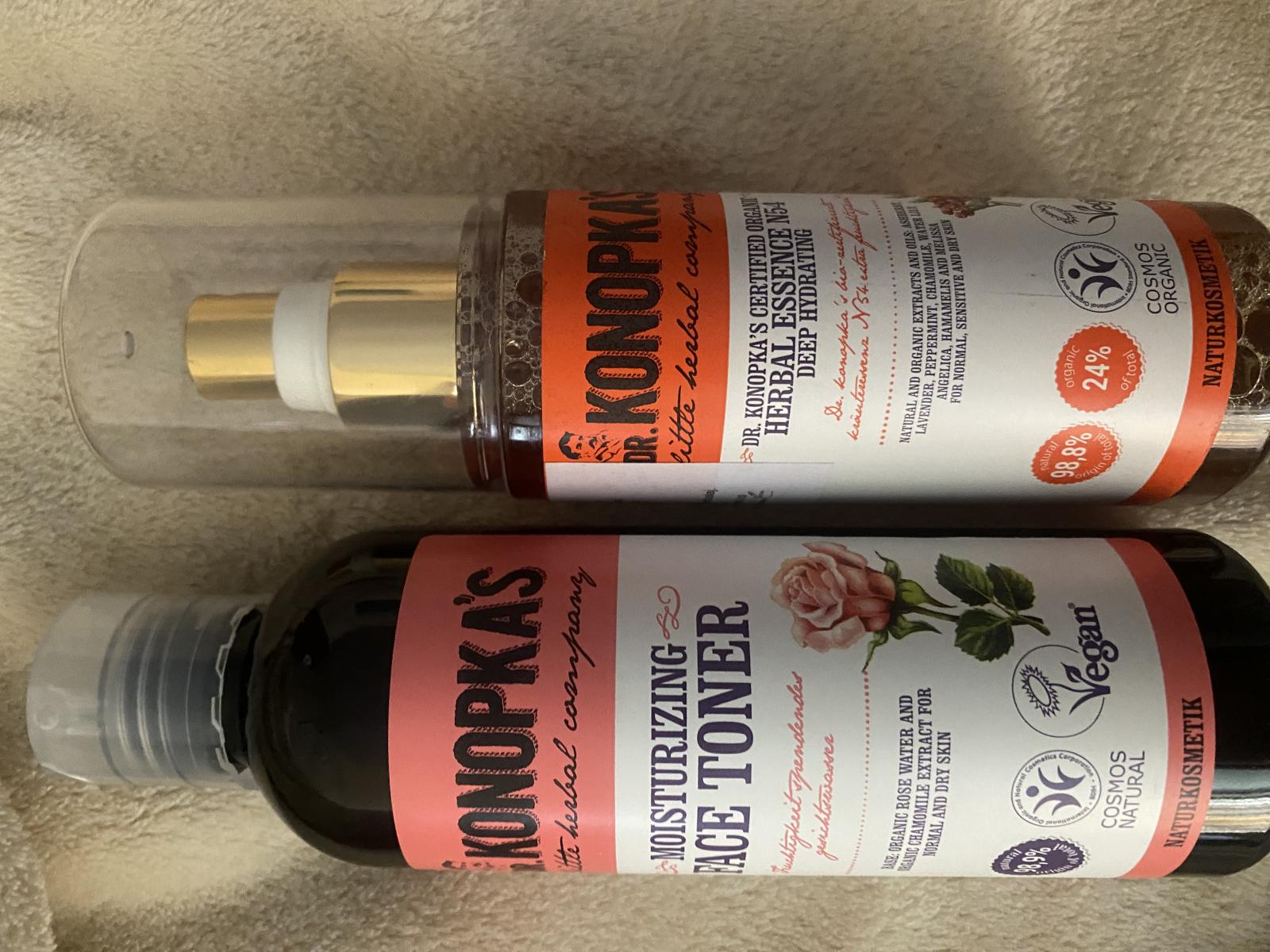 Tonerul de fata hidratant semnat Dr. Konopka este atingerea plina de nutrienti pe care pielea ta o merita zi dupa zi. Este realizat cu extract organic de musetel bogat in substante nutritive care ajuta la calmarea si catifelarea pielii, in timp ce elimina impuritatile. Impreuna cu apa de trandafir, acest toner ideal pentru tenul normal si uscat curata delicat si restabileste nivelul optim de hidratare al pielii, lasand pielea sa se simta moale, invaluita in confort si aspect neted. Este un produs vegan, certificat COSMOS NATURAL.