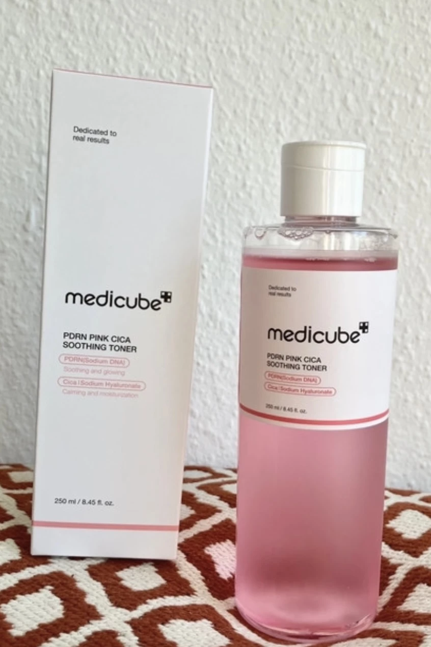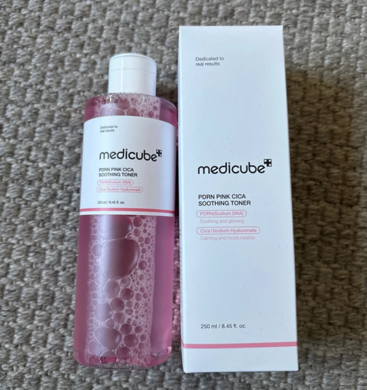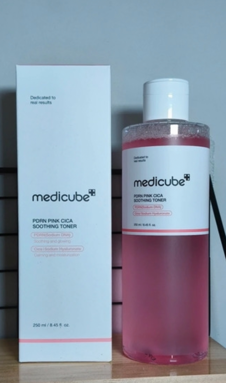 Medicube PDRN Pink Cica Soothing Toner este un toner functional conceput pentru a oferi un efect intens de hidratare, calmare, iluminare si revitalizare a pielii. Formulat cu PDRN din somon (Sodium DNA), niacinamida, un complex de 5 peptide si extracte naturale cu efect calmant, acesta sustine regenerarea pielii, reduce petele pigmentare, amelioreaza aspectul tern si reda elasticitatea si luminozitatea tenului.