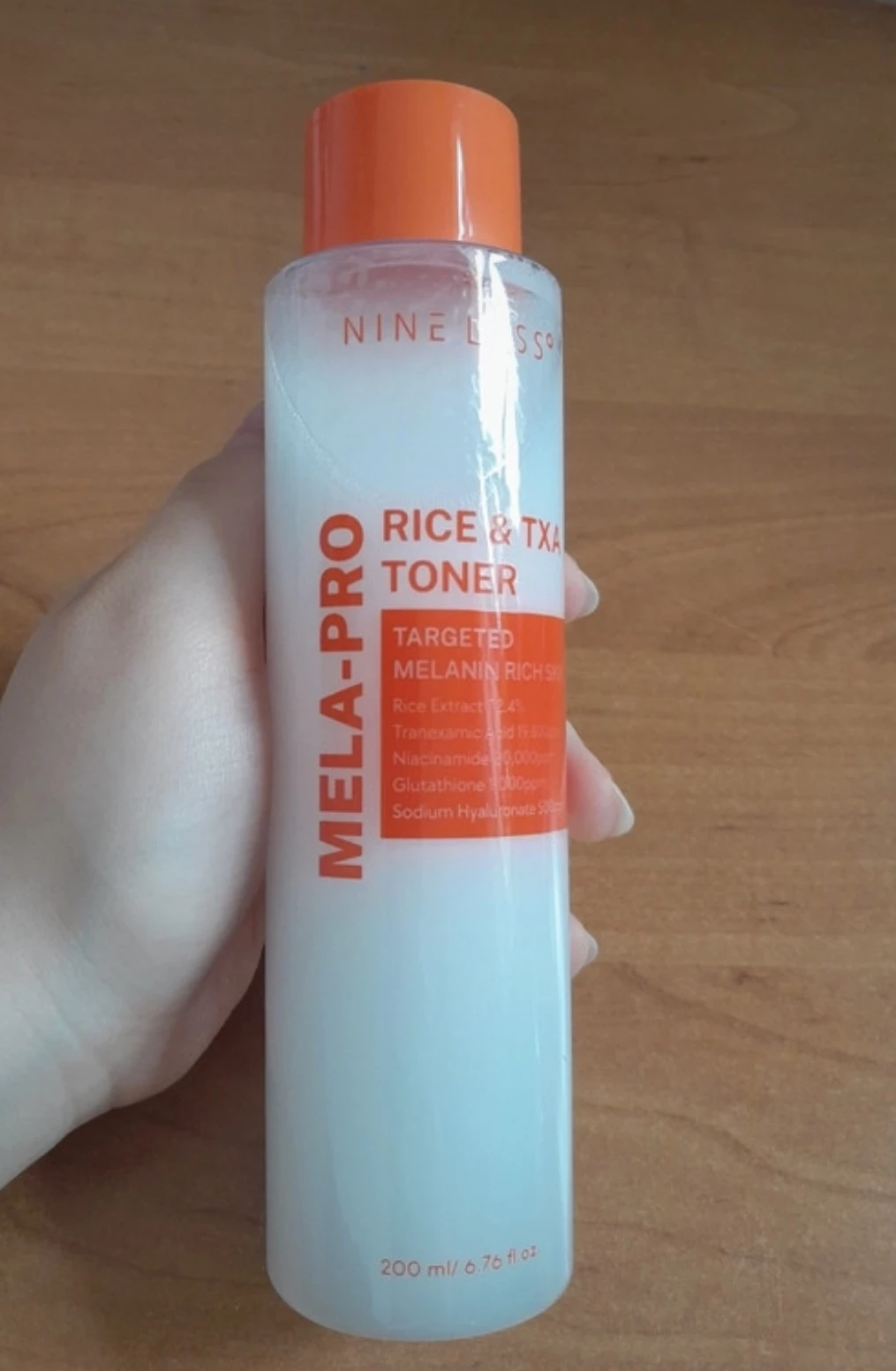 Obtine un ten luminos si uniform cu tonerul NINE LESS Mela-Pro Rice & TXA, imbogatit cu apa din seminte de orez, acid tranexamic si niacinamida. Formula sa este creata special pentru a combate petele pigmentare, dezvaluind un ten mai stralucitor si uniformizat cu fiecare utilizare.
