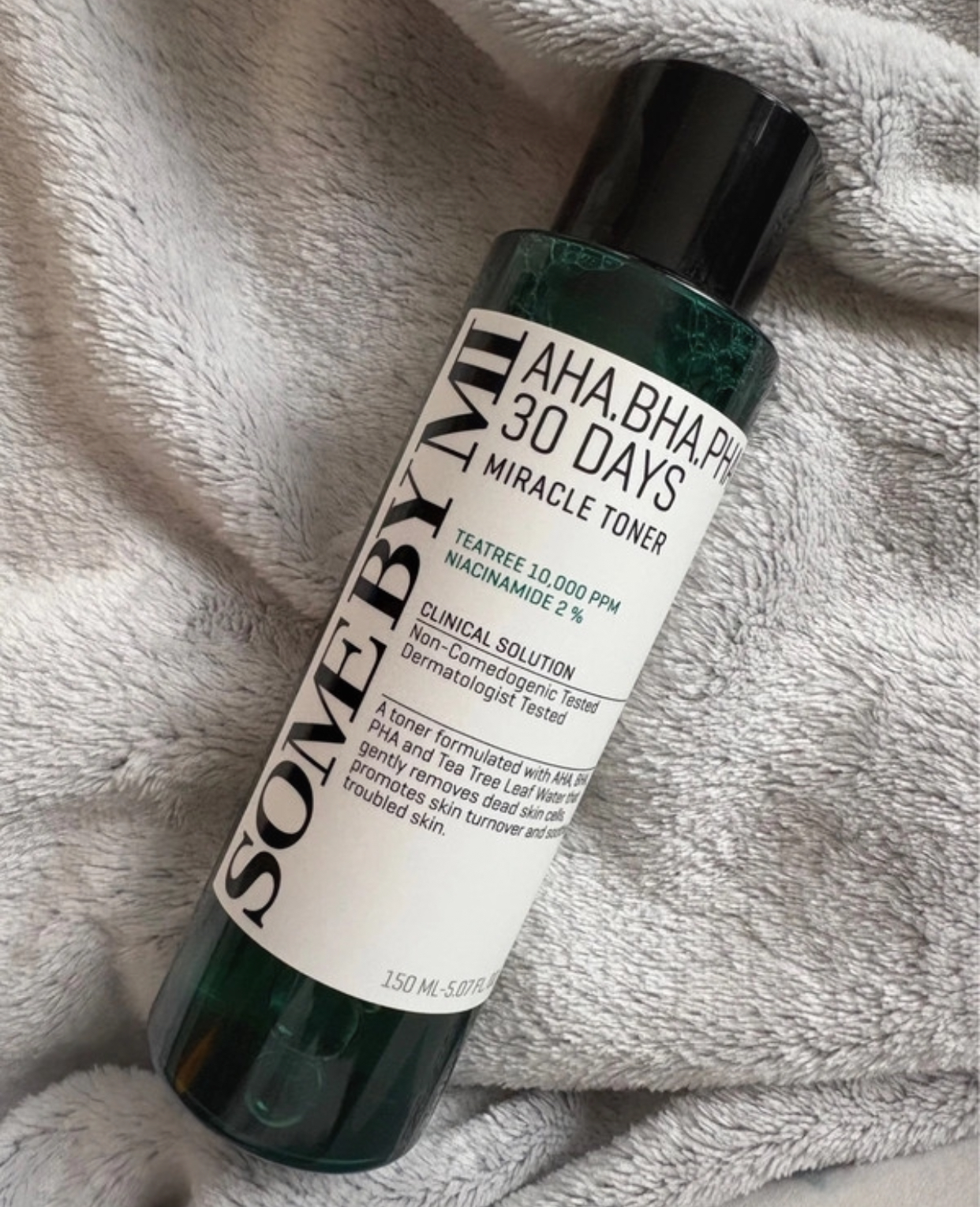Some By Mi AHA BHA PHA 30 Days Miracle Toner este un toner special conceput pentru ingrijirea zilnica a fetei, fiind ideal pentru pielea predispusa la exces de sebum, textura neuniforma sau sensibilitate. Formula lui delicata contine acizi AHA, BHA si PHA care ajuta la exfolierea blanda a celulelor moarte, la curatarea porilor si la reinnoirea pielii, oferind un aspect mai neted si mai luminos.
