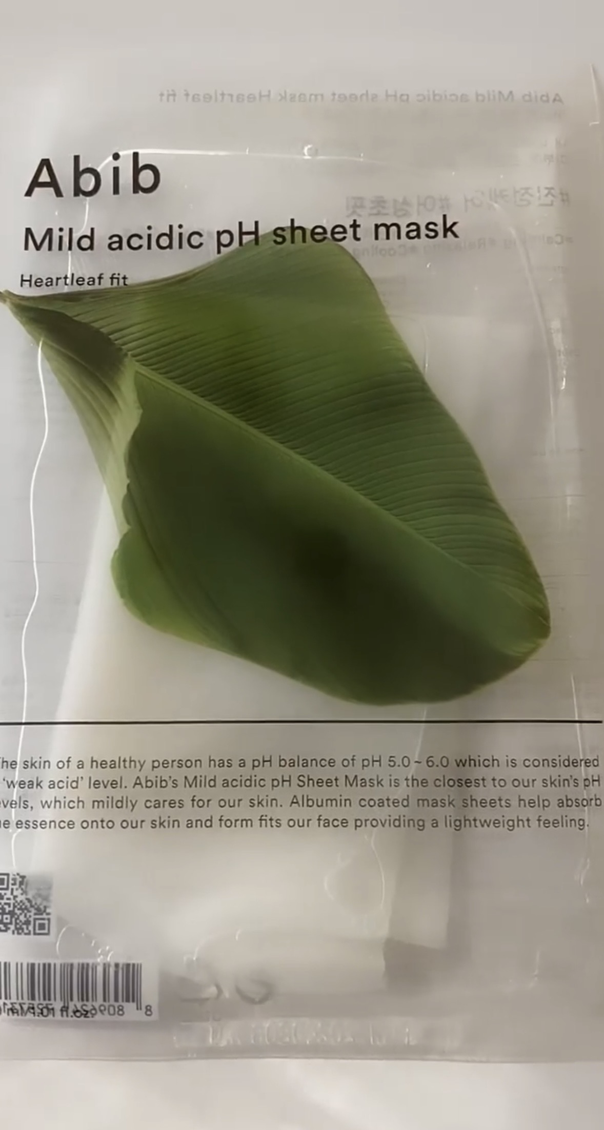 Abib Mild Acidic pH Sheet Mask Heartleaf Fit este o masca faciala din tesatura moale, conceputa pentru a calma si hidrata pielea sensibila, predispusa la acnee.