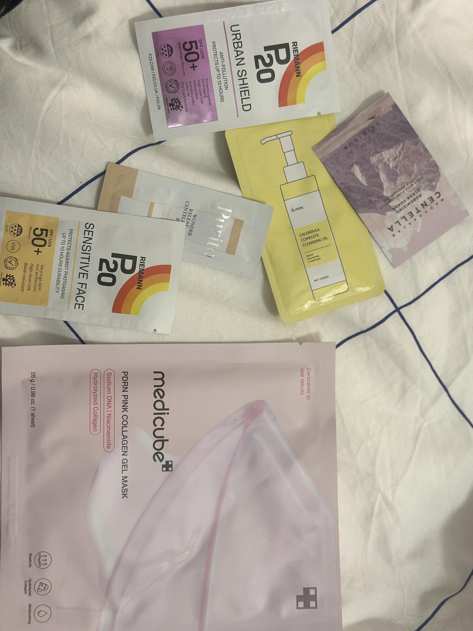 Masca aceasta este incredibila! Textura se transforma din roz in transparent si chiar simti cum ingredientele patrund in piele. Mi-au trimis si cateva mostre de la alte produse Medicube in pachet, ceea ce a fost o surpriza placuta.