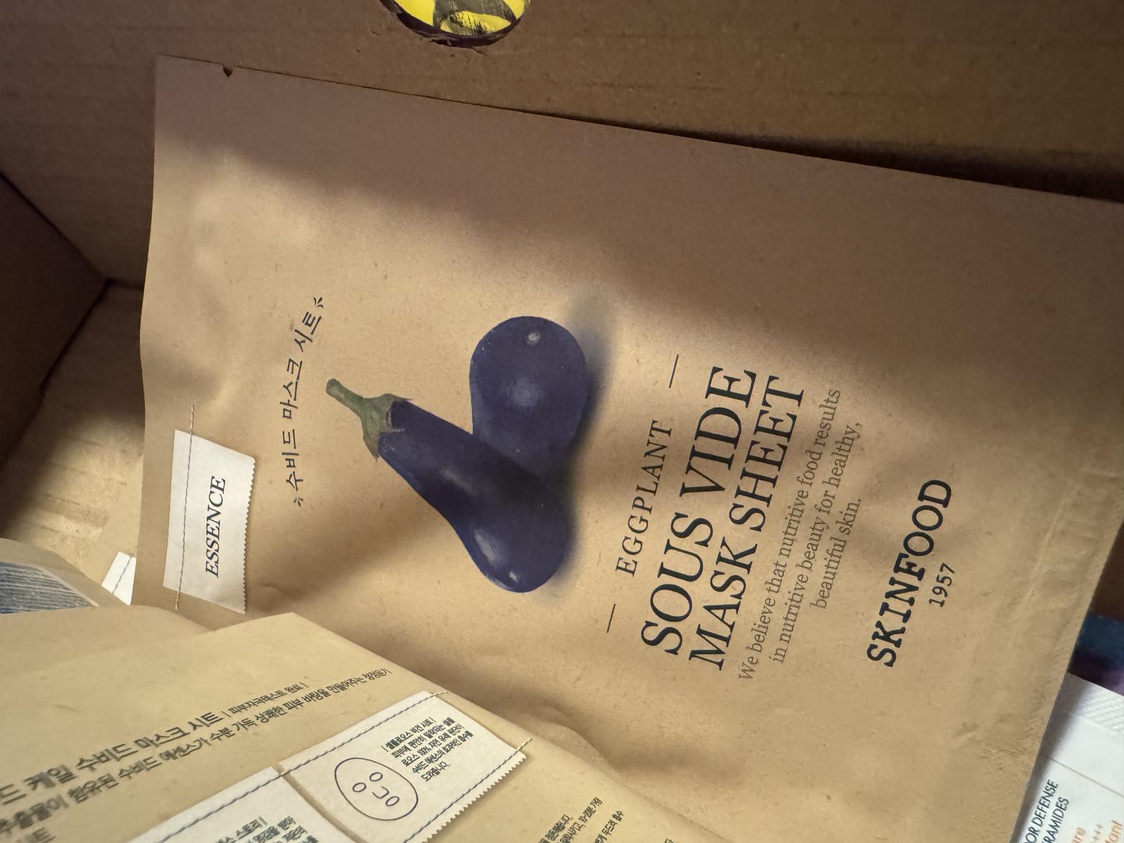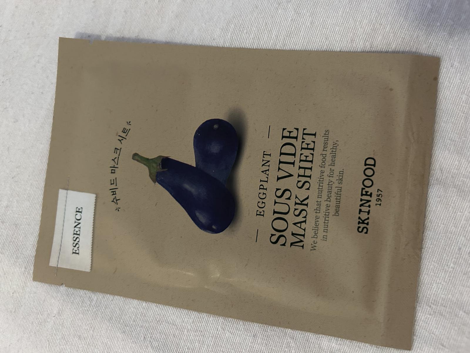 SKINFOOD Eggplant Sous Vide Mask Sheet este o masca faciala tip servetel, conceputa pentru a oferi confort, hidratare si calmare pielii. Imbibata in esenta concentrata si imbogatita cu extract de vinete obtinut prin metoda sous-vide, aceasta lasa pielea catifelata si reimprospatata.