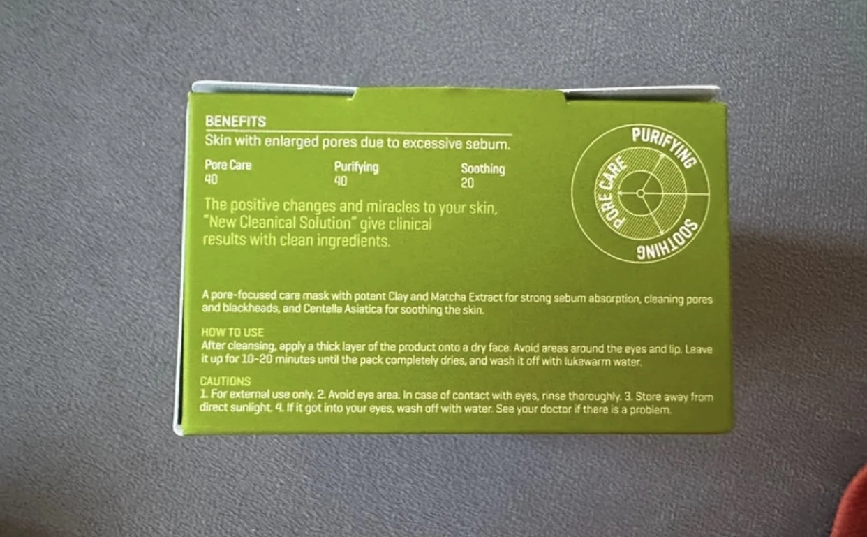 Am primit mostre gratuite in colet, dar aceasta masca m-a convins imediat sa o cumpar in format mare. Curata perfect porii si lasa tenul catifelat. Textura cremoasa face aplicarea foarte placuta, iar dupa folosire pielea ramane curata si luminoasa, fara sa se simta uscata.